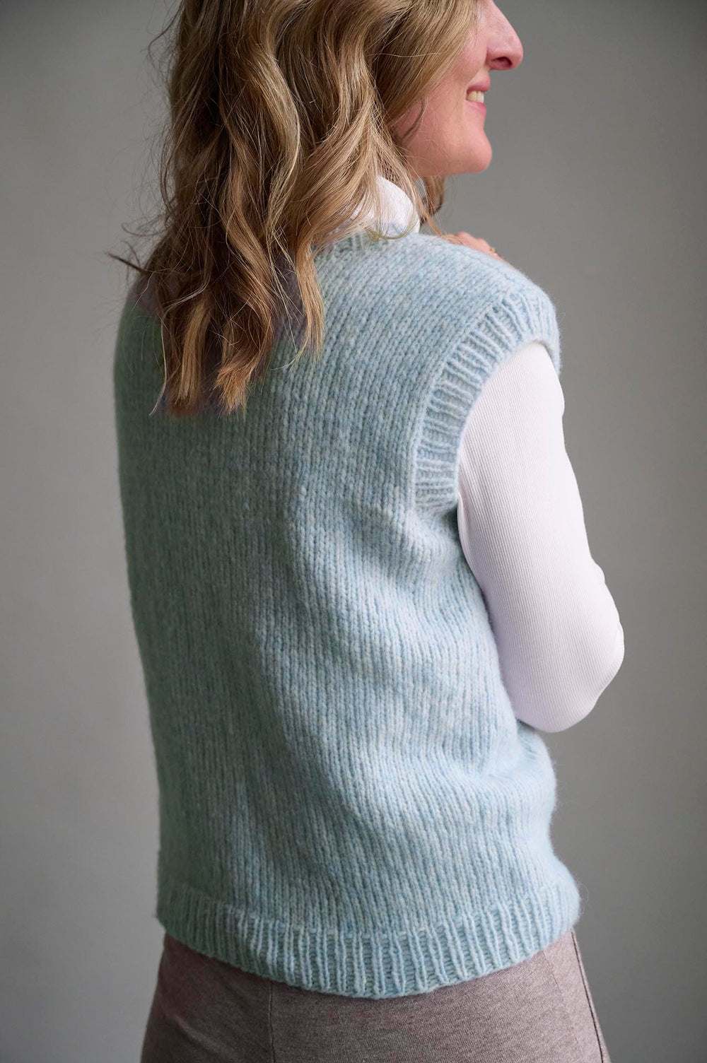 Vesten kan også strikkes i Mayflower Easy Care Classic sammen med en følgetråd af Mayflower Super Kid Silk Print. Find opskriften lige her.