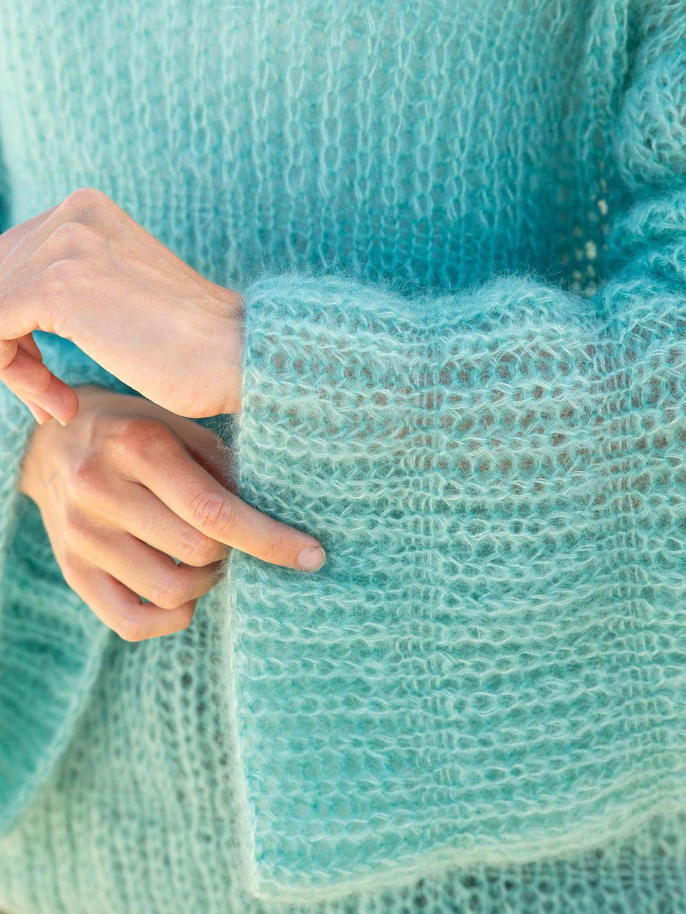 Selvom sweateren er let og luftig, må du ikke lade dig narre. Den er nemlig også dejligt lun og kan sagtens bruges på kølige dage. Mohairgarn er generelt kendetegnet ved at være både varmt og åndbart.