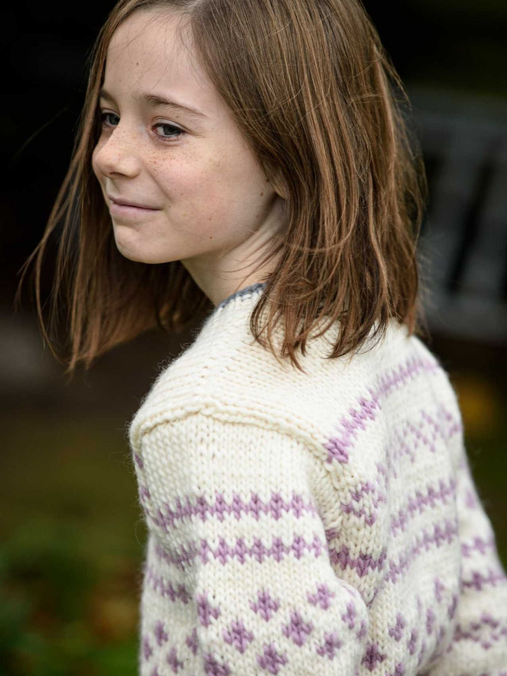 Er du forelsket i denne opskrift? Lucca Sweateren kan også strikkes til en voksen. Du finder opskriften lige her.