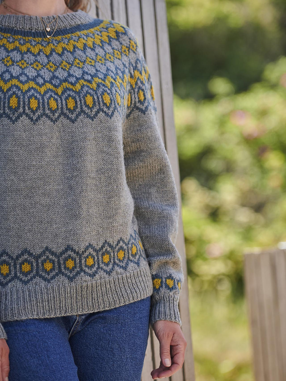 Sweateren strikkes med Mayflower Easy Care Classic. Garnet er spundet på 100% uld og er blødt og lunt. Du får derfor en lækker, fyldig trøje med det fineste mønster. Easy Care Classic fås i et væld af forskellige farver, og du kan derfor nemt finde fine farver, som vil komplimentere hinanden.
