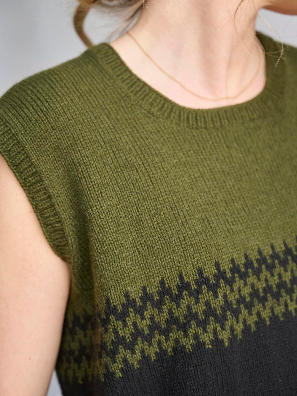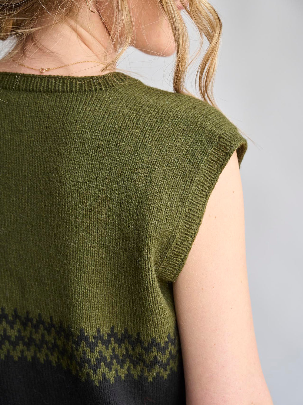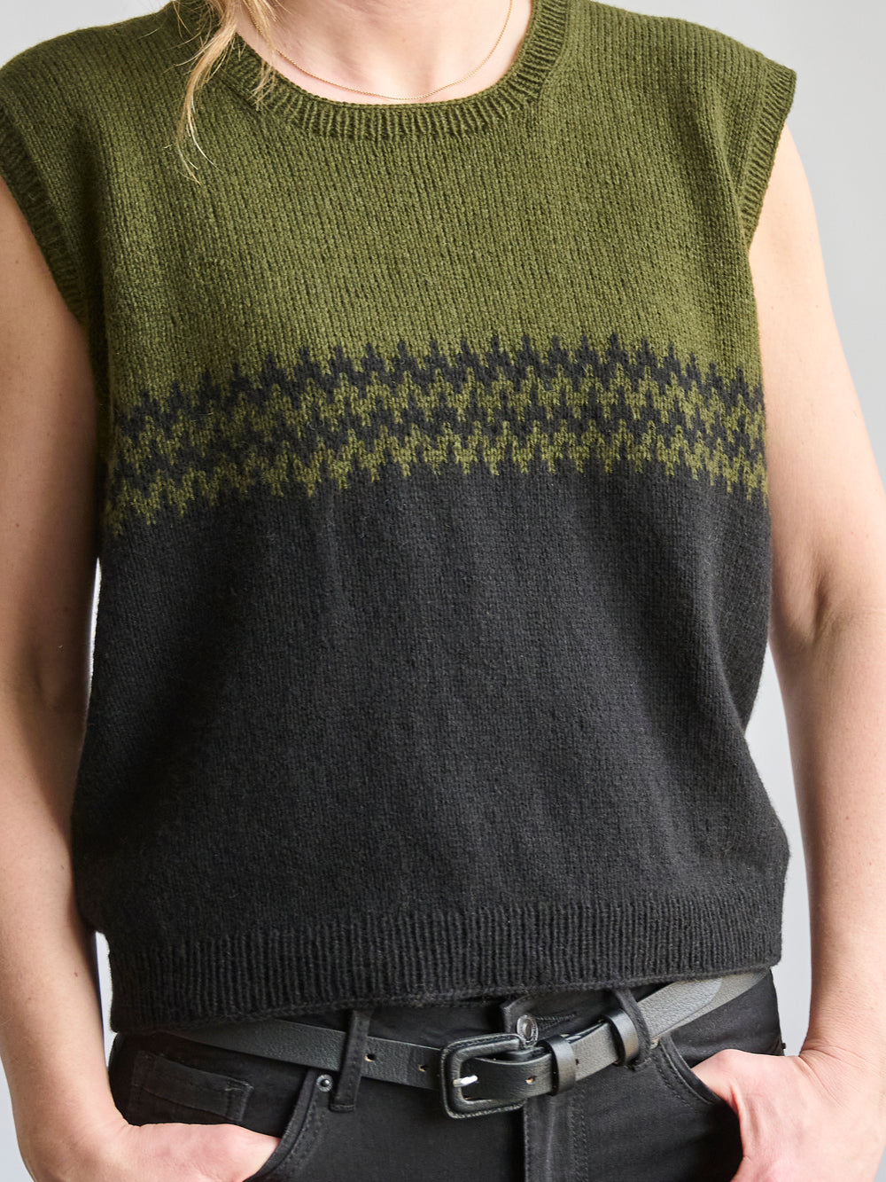 Malou vesten er en blød, let og lækker vest, der både kan bruges som vest over en bluse eller som sommertop. Den er strikket med to farver i én af vores eksklusive garnkvaliteter og har et afgrænset mønster, der løber over for- og bagstykke. Malou vesten er let at gå til med et design, der strikkes oppefra og ned med diagram over forholdsvis få pinde.