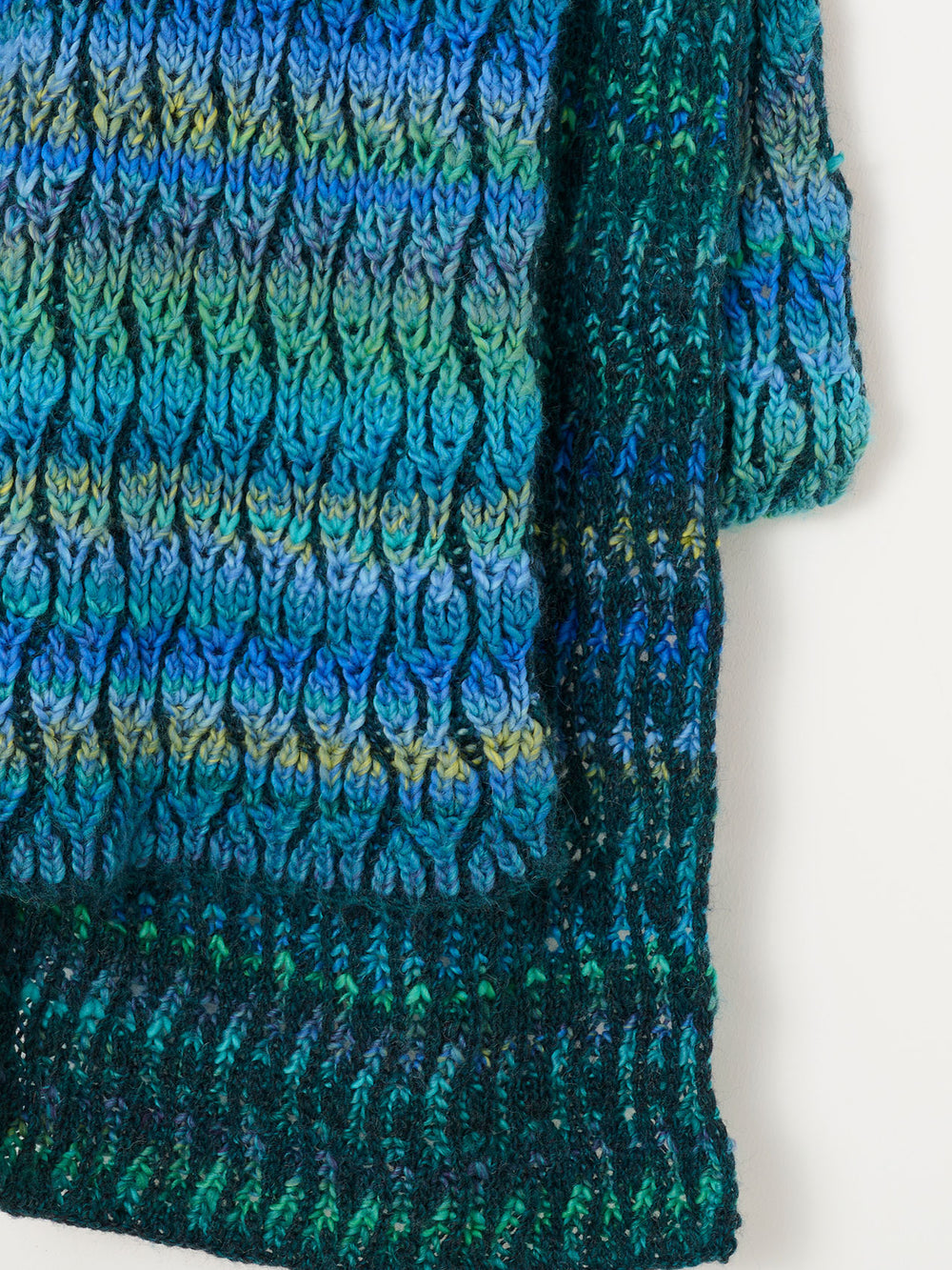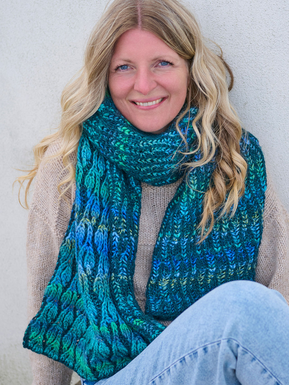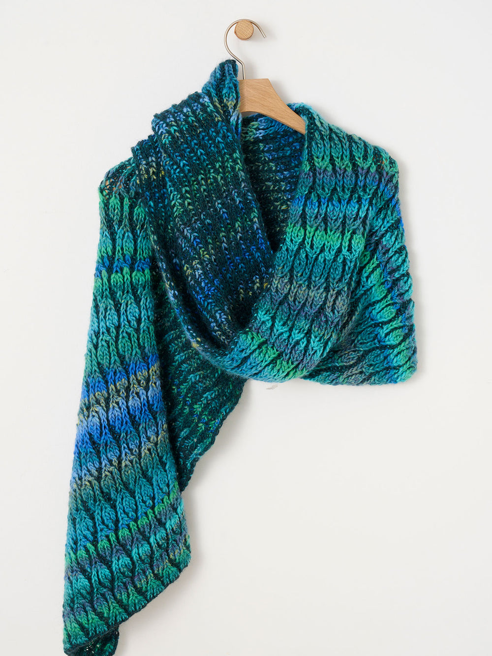 Sjalet strikkes i en kombination af det uldne og farverige Premium Maxima samt alpakablandingen Taormina Shade. Skønne garnkvaliteter, som er ideelle til et vamset og lunt sjal. I et strikkeprojekt som dette kommer det skiftende farveløb Maxima også virkelig til sin ret.
