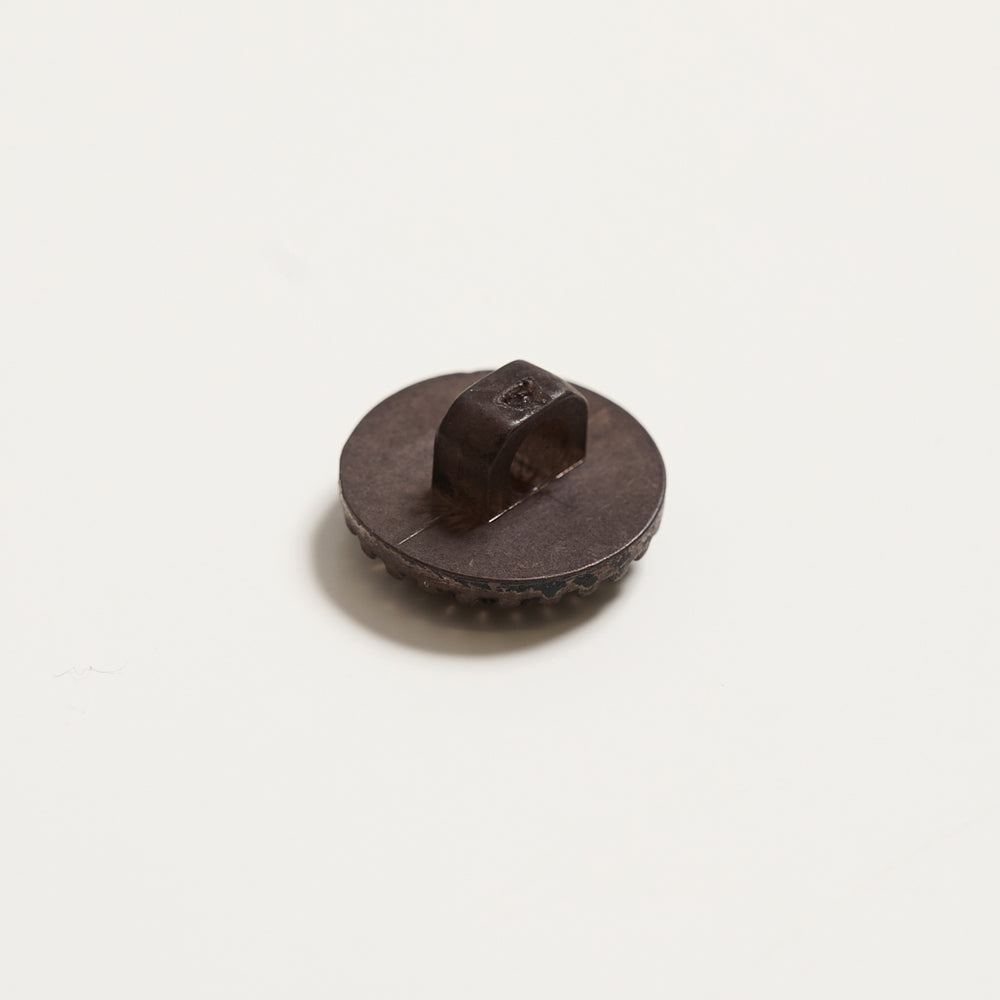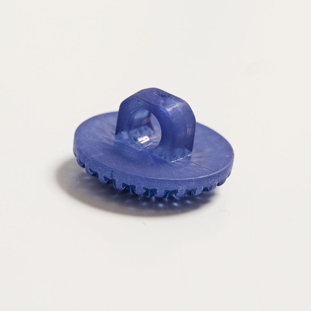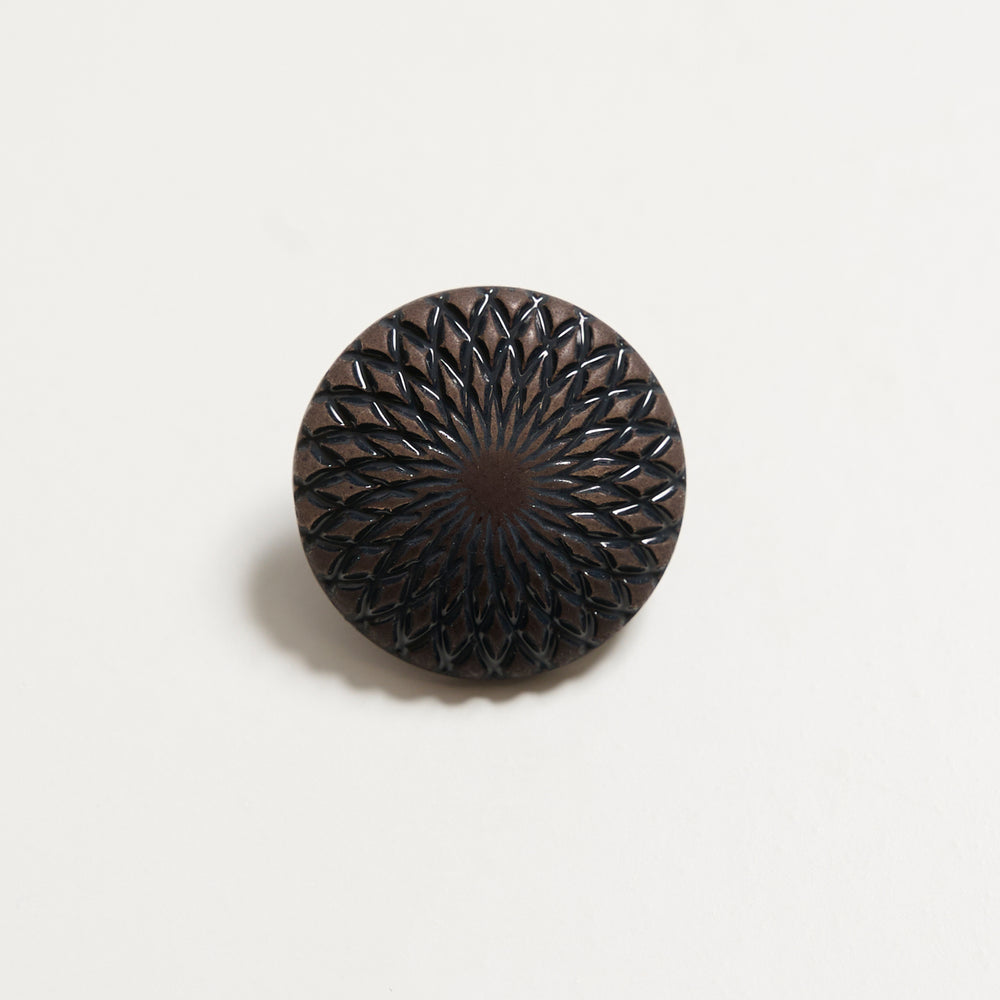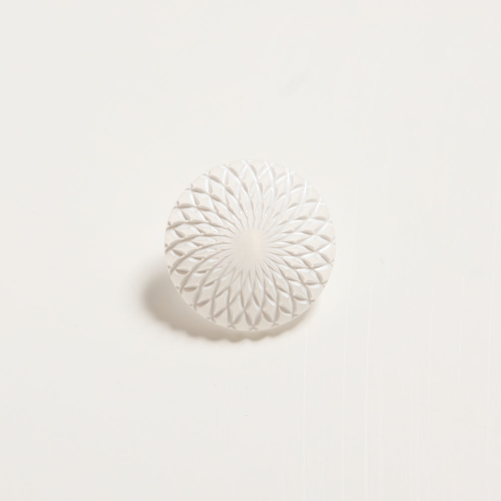 En fin knap med blomstermønster, som fås i blå, hvid og sort i 13mm og 15mm med 8 stk. i en pakke.