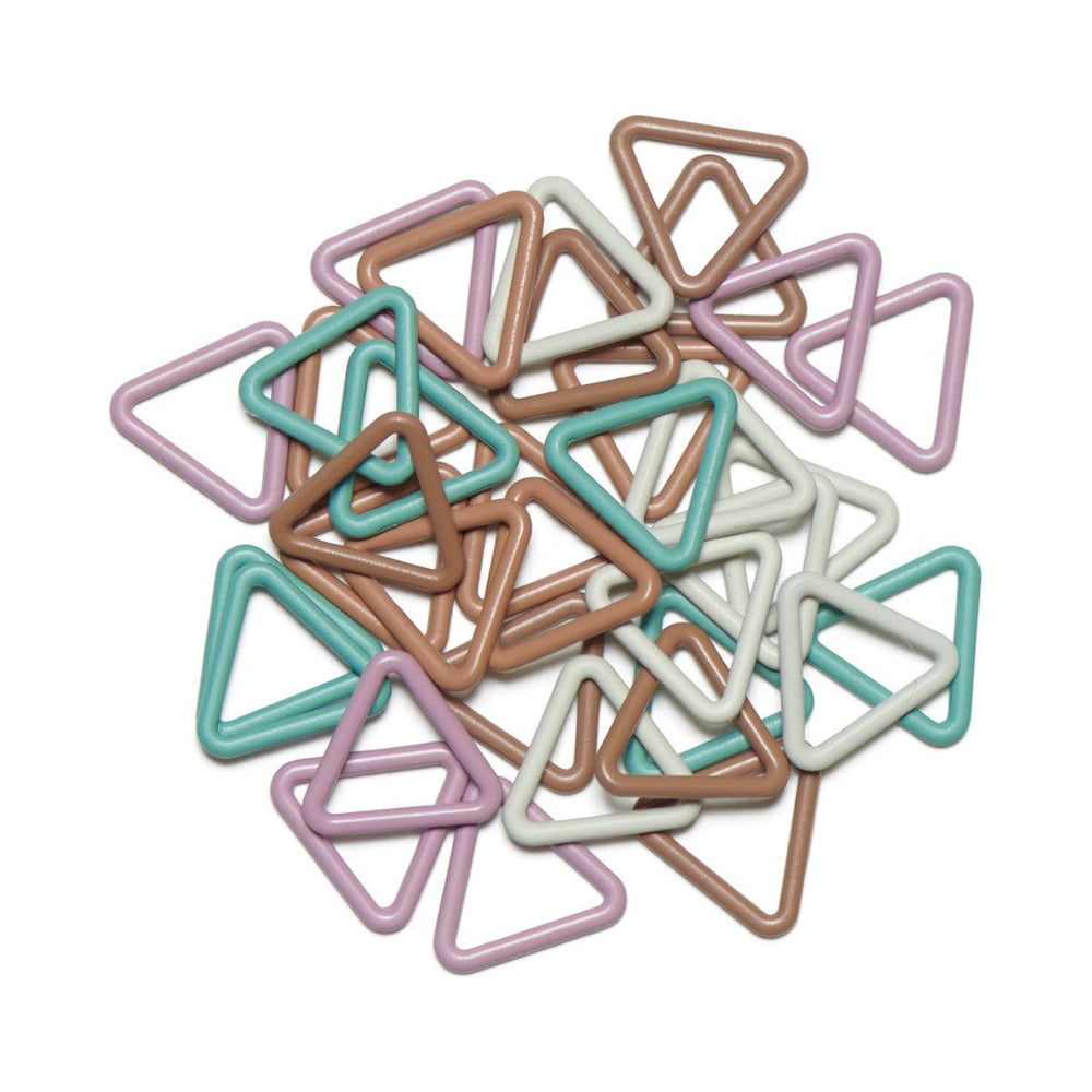 De trekantede maskemarkører fra Mayflower Create er produceret i metal og er meget lette. Maskemarkørerne kommer i forskellige farver i en praktisk æske med 42 stk., der gør det nemt at tage dem med på farten. Maskemarkører er et uundværligt hjælpemiddel til både strik og hækling, når du fx skal strikke en sweater. Med maskemarkører kan du markere omgange, steder for udtagning eller indtagning osv.