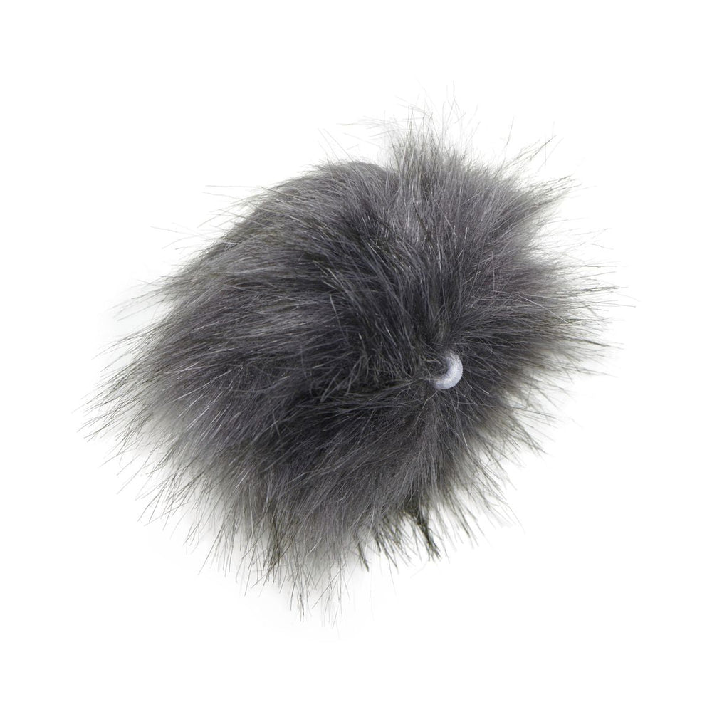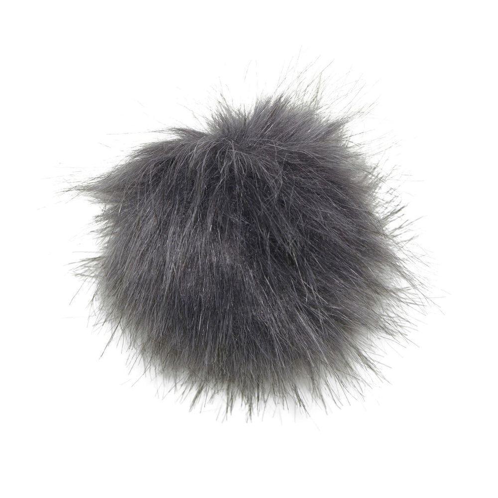 Pompon fra Mayflower Create i antracit kunststof, der kan bruges som en blød og sød effekt på huer, tasker mm. Den er med elastik og kan fx monteres på en knap, så den kan tages af. Mål: ca. 10 cm i diameter.