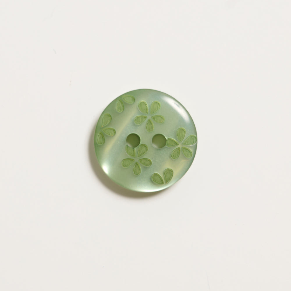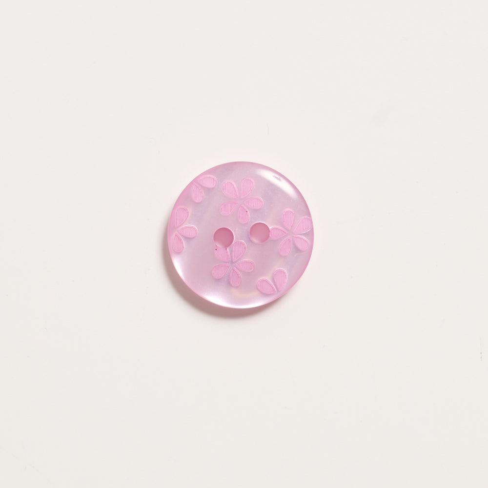 2-huls knapper med blomstermotiv i 5 forskellige farver med shiny look. Mål: 15mm. Antal: 8 stk.