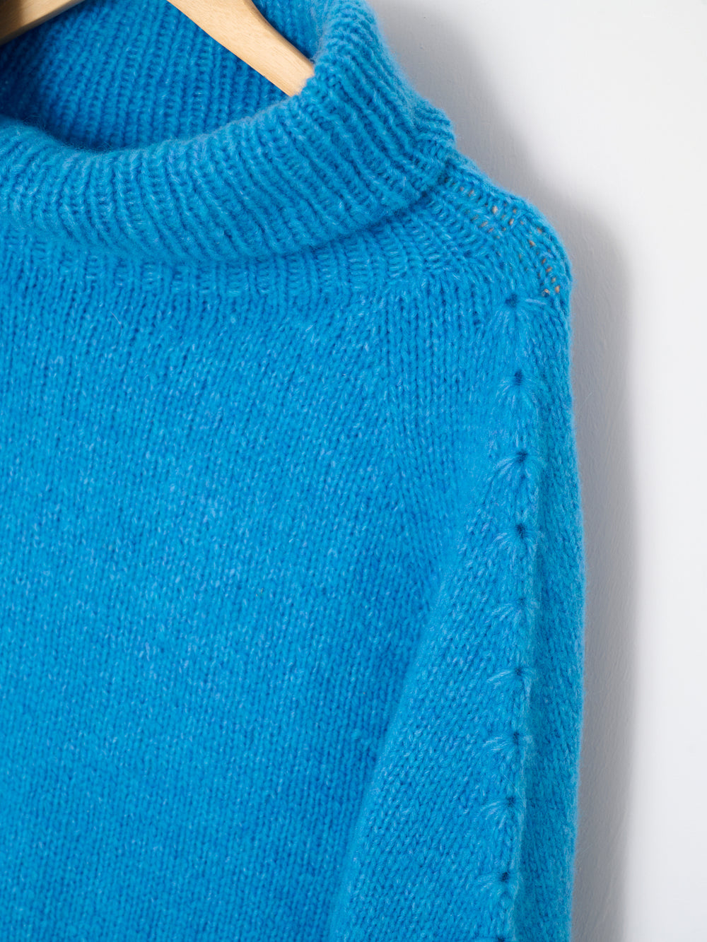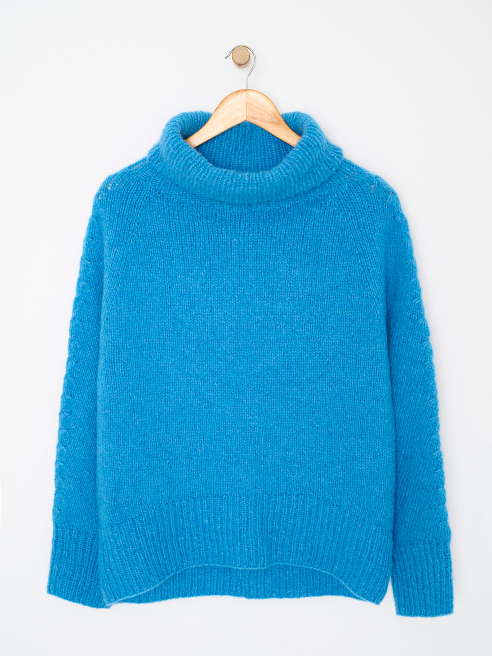 Sweateren er strikket oppefra og ned, og vendepinde sikrer den helt rette pasform. Derudover er sweateren monteringsfri, så den er perfekt, hvis du ikke er glad for montering.