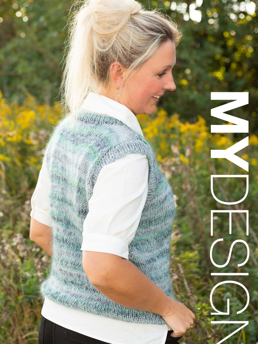 Denne vest er strikket i Mayflower Super Kid Silk Print og Mayflower Easy Care Classic, som er to af Mayflowers mest populære garnkvaliteter.