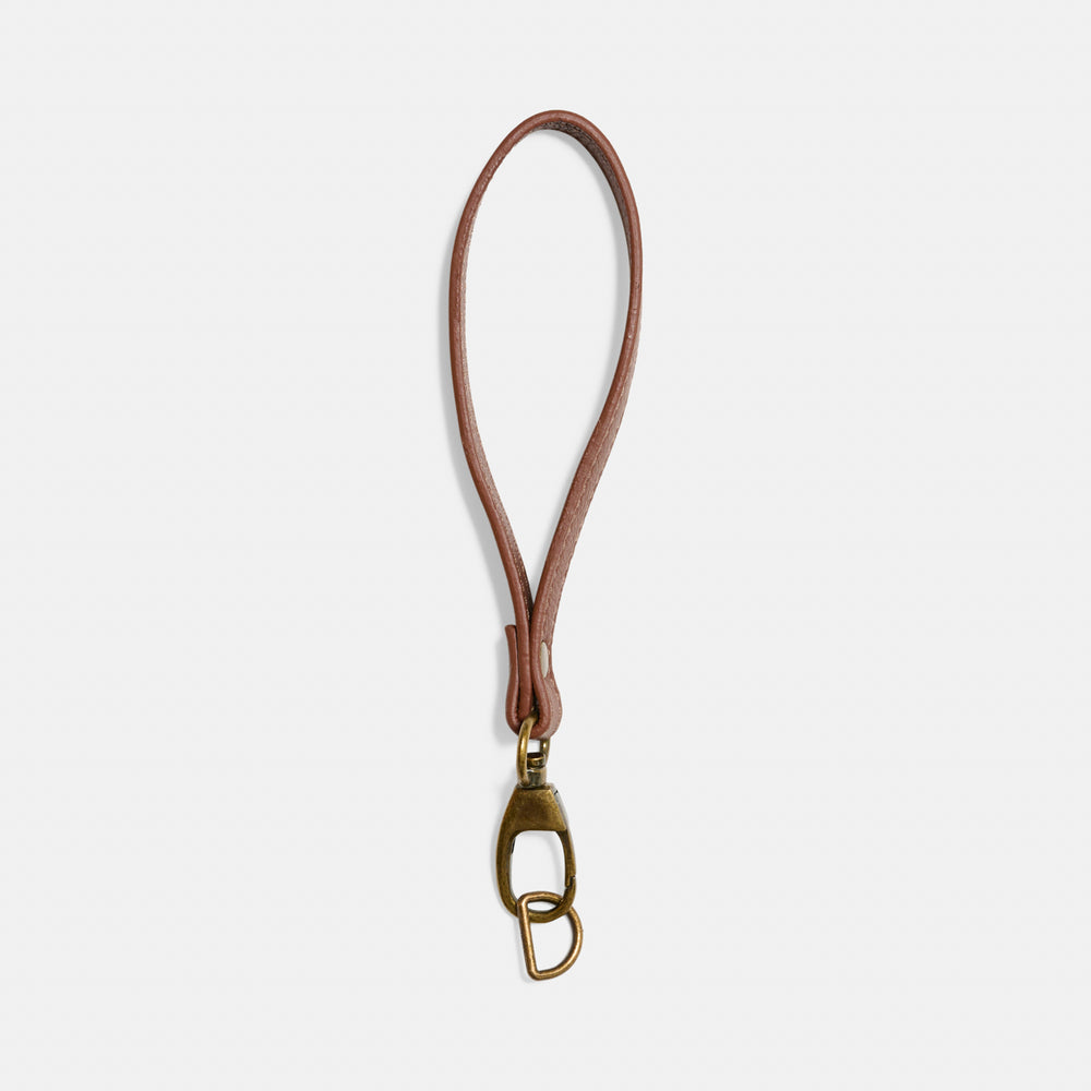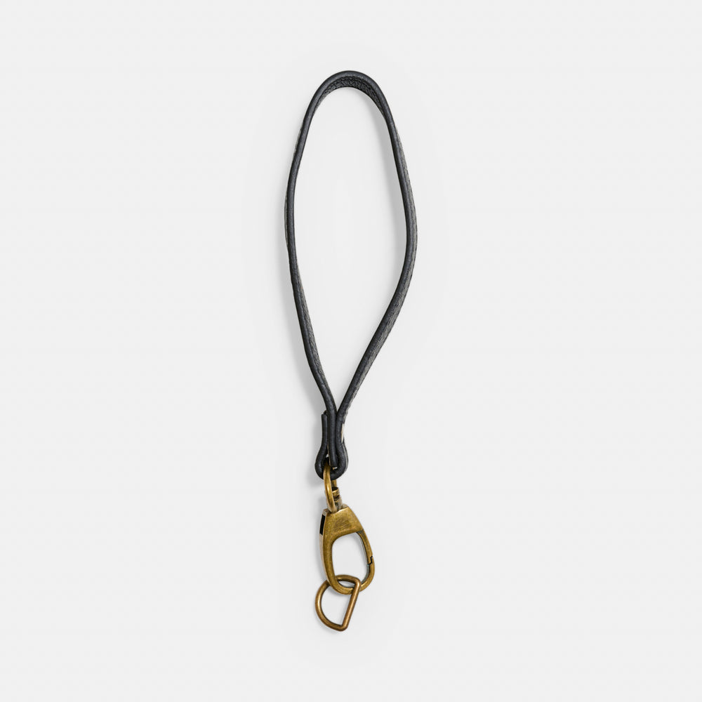 En taskestrop til en clutch, som er håndlavet og produceret i ægte læder. Stroppen er ca. 16 cm lang og monteres på clutchen med en bronzefarvet karabinhage i en D-ring. Taskestroppen fås i enten sort eller brun.