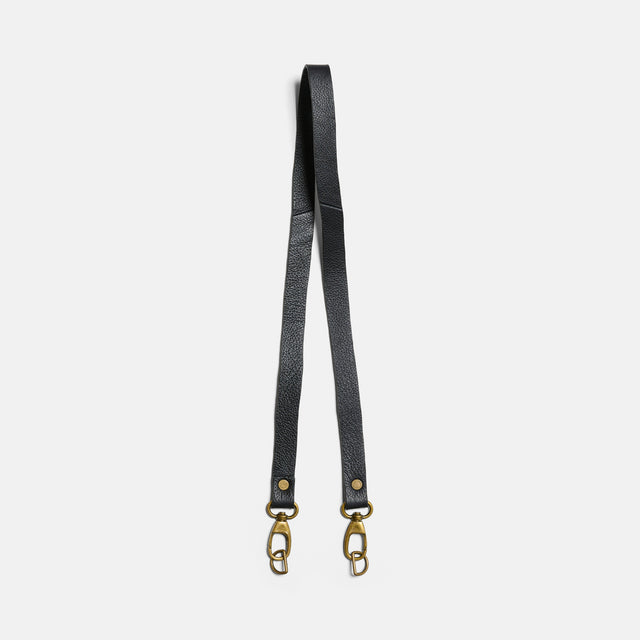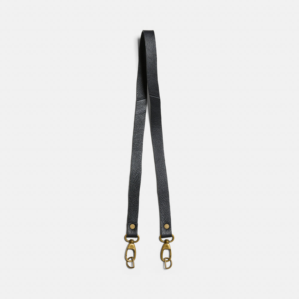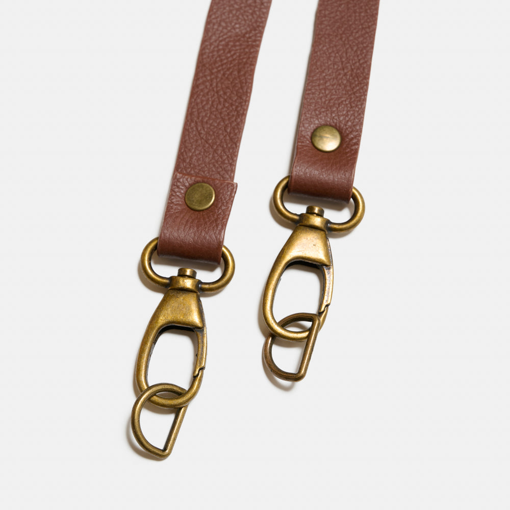 Taskehank, som er håndlavet og produceret i ægte læder med bronzefarvede karabinhager. Karabinhagerne monteres på tasken med D-ringe. Taskehanken er 87 cm lang (inkl. karabinhager), 18 mm bred og har en tykkelse på 2,5-3 mm. Taskehanken fås i enten sort eller brun.