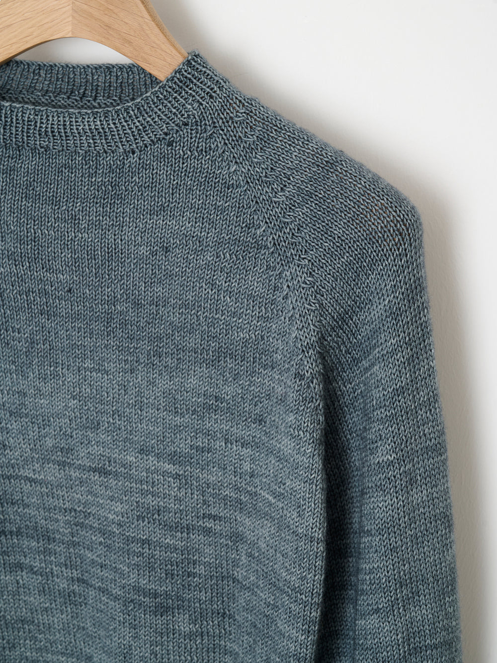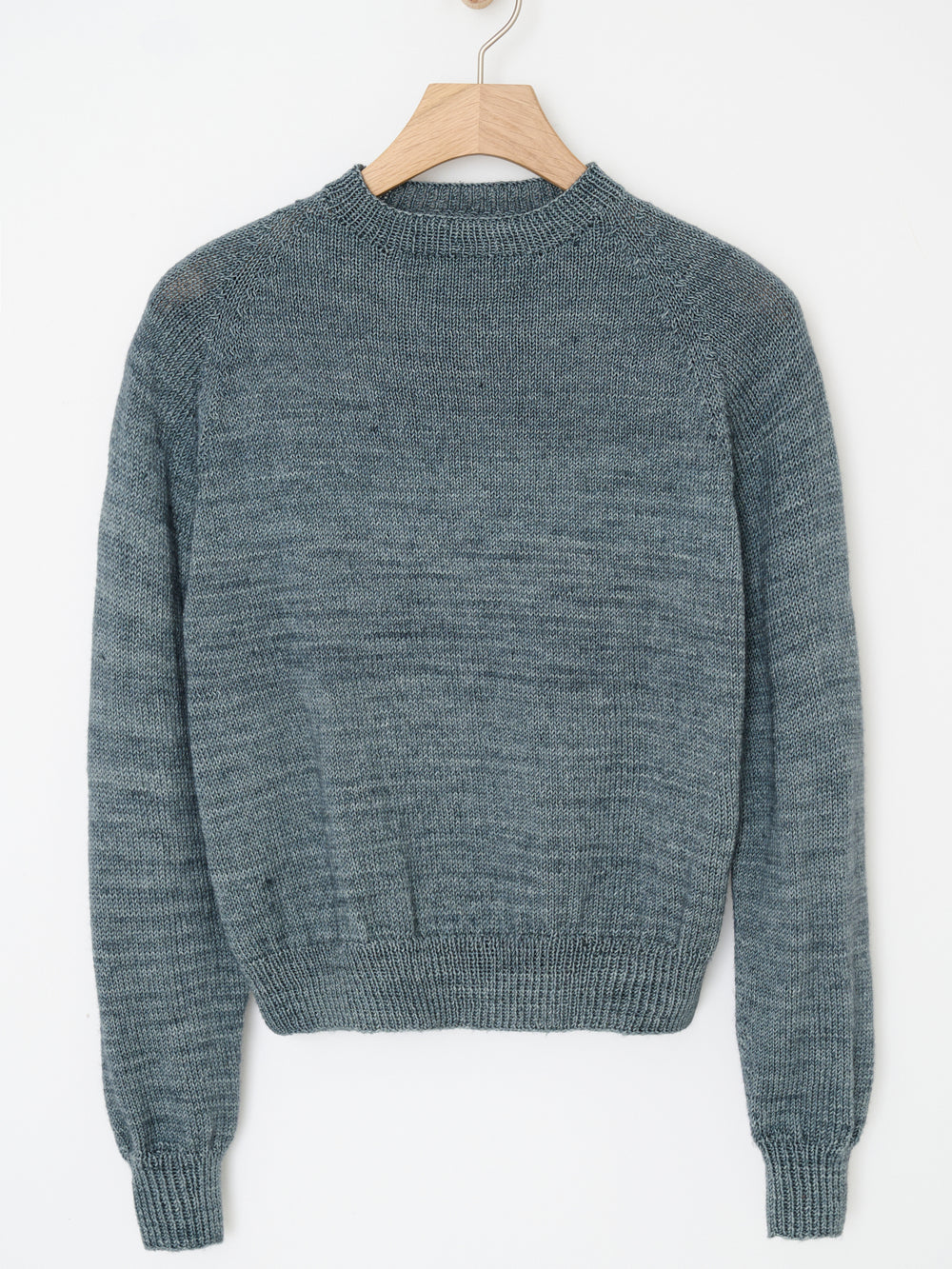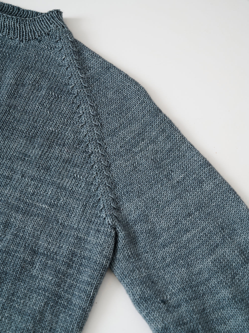 Mie sweater er en raglansweater, som strikkes nedefra og op i glatstrik og med kanter i rib.
