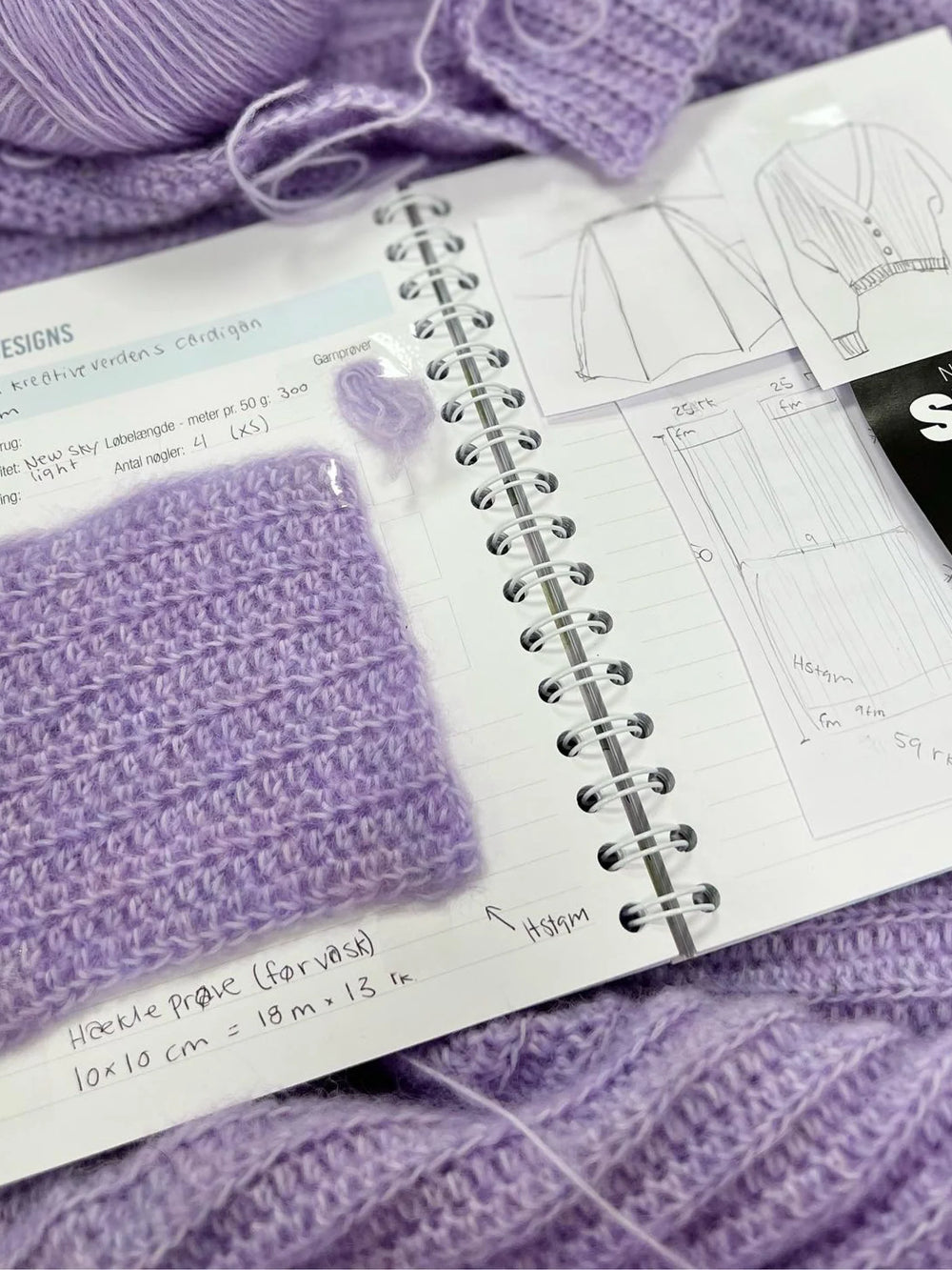 Journalen har sider med plads til at klippe og klistre garn, idéer mm. fast. Og med rig mulighed for at skrive tanker, opskrifter og inspiration ned.