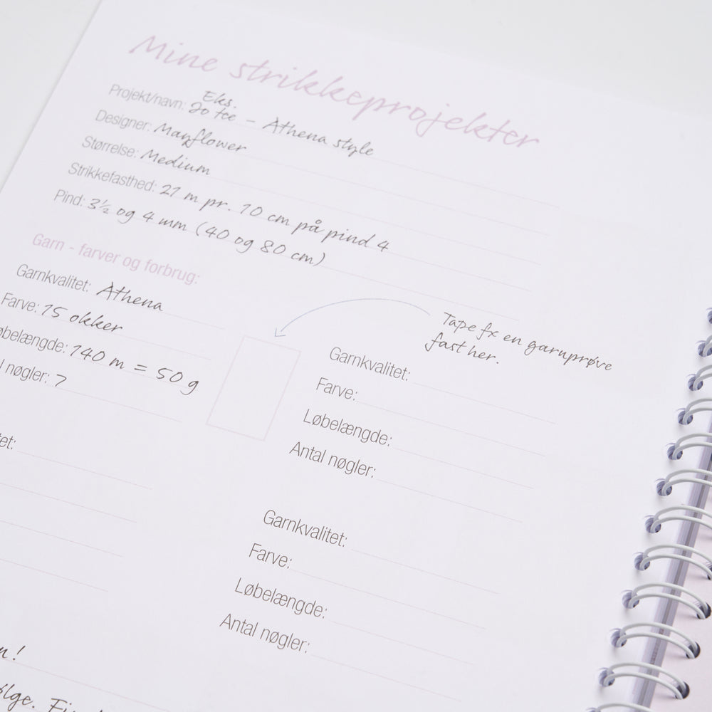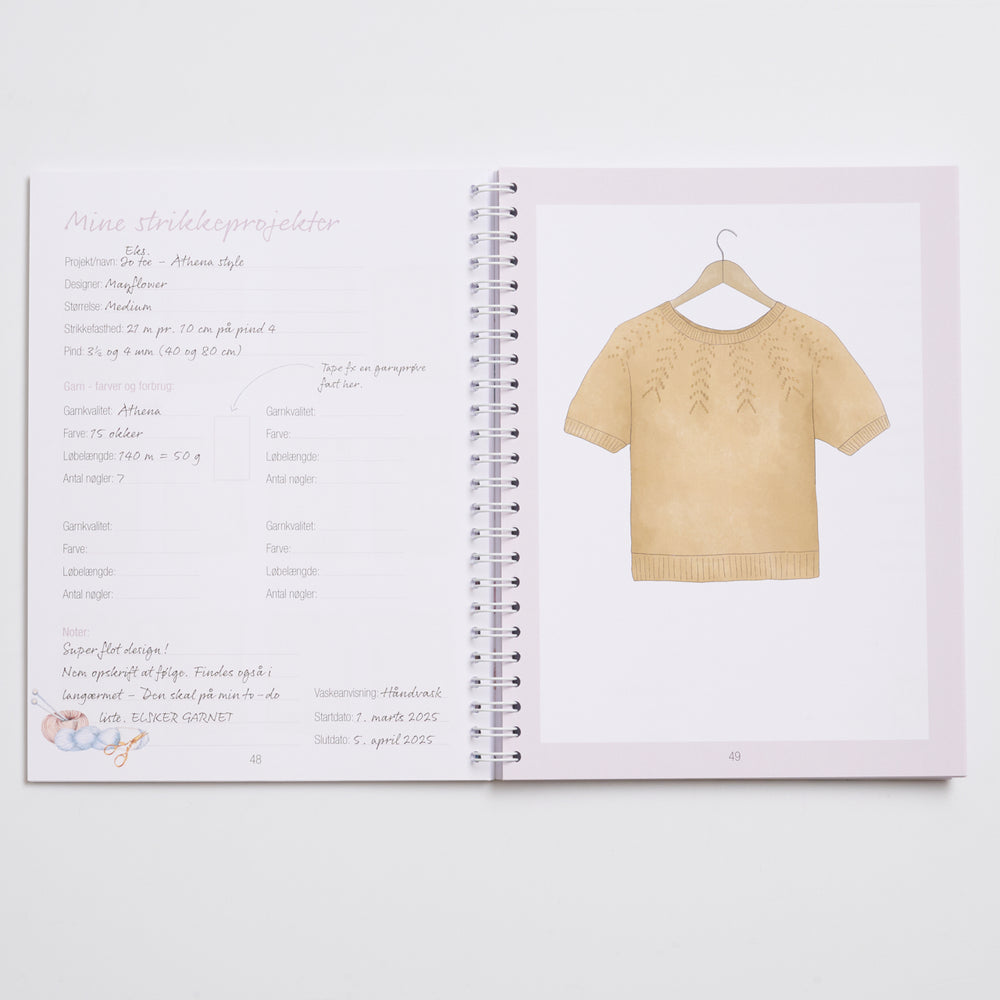 Denne strikkejournal er til dig, som bare elsker at strikke og gerne vil holde styr på dine projekter, fremtidige projekter, idéer, farveprøver osv.