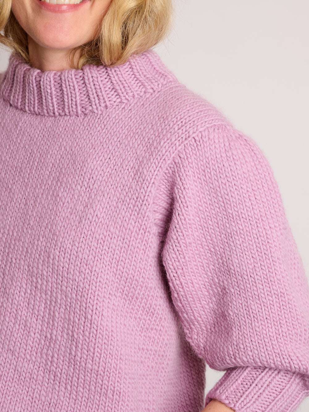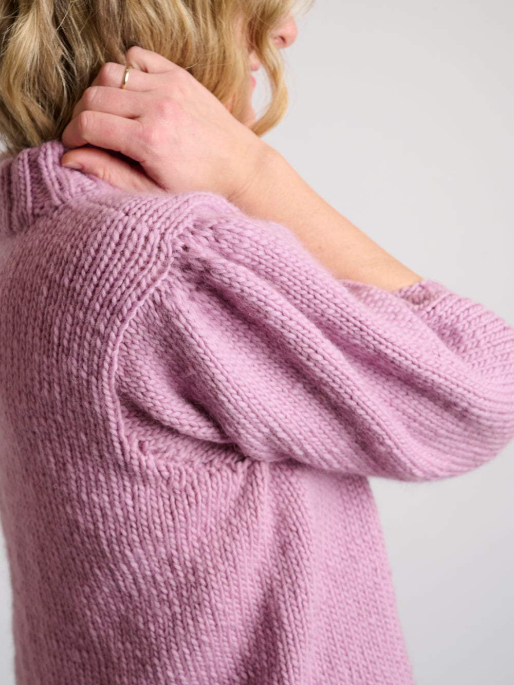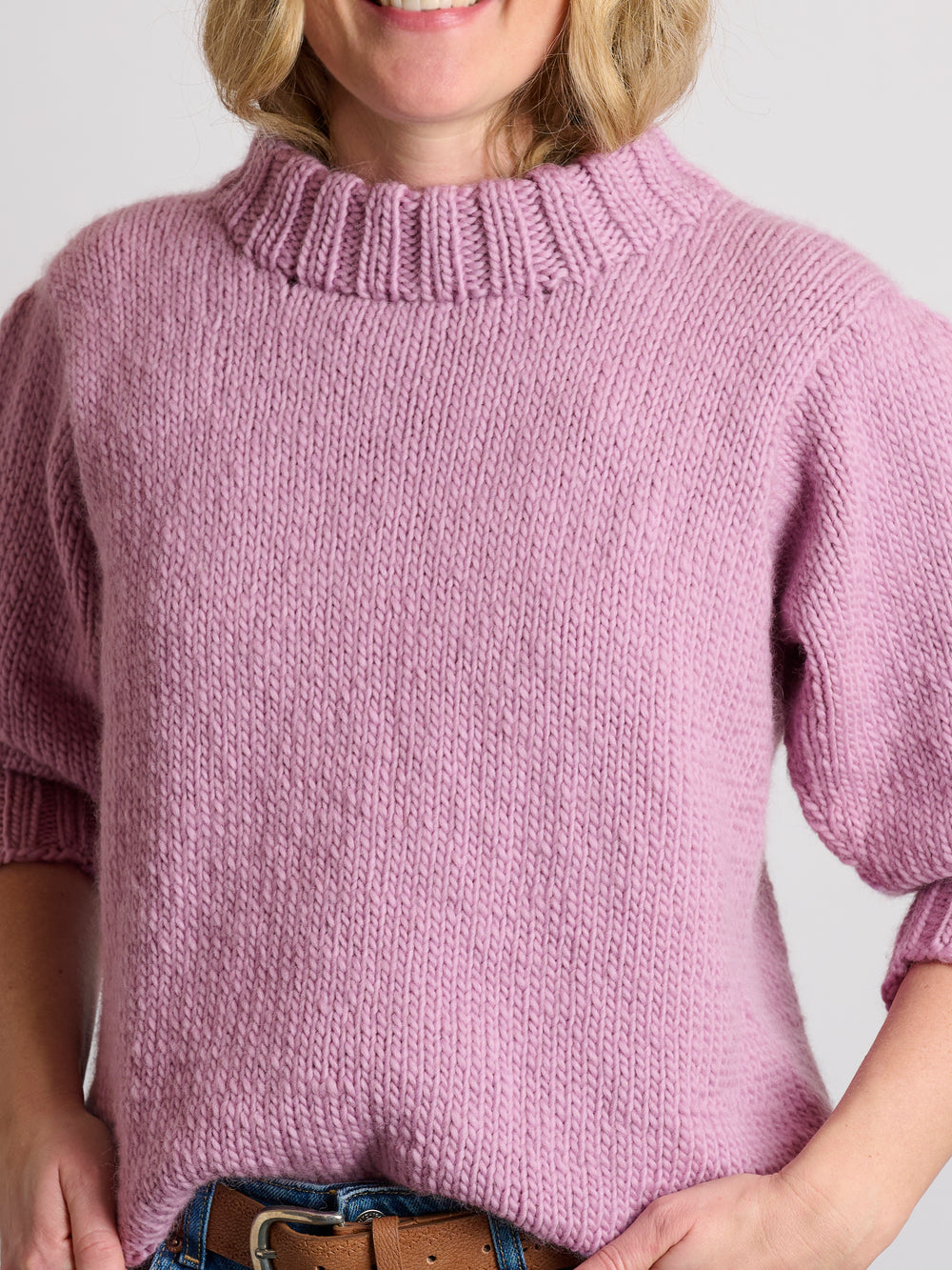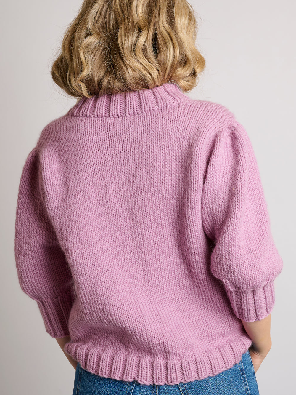 Minnie blusen er en sød og enkel bluse. Blusen har fået masser af personlighed med sine puffede trekvartærmer og chunky ribkant i halsåbningen. Selvom blusen har masser af fylde, er den stadig let og luftig. Det er muligt takket være blusens helt specielle garn.