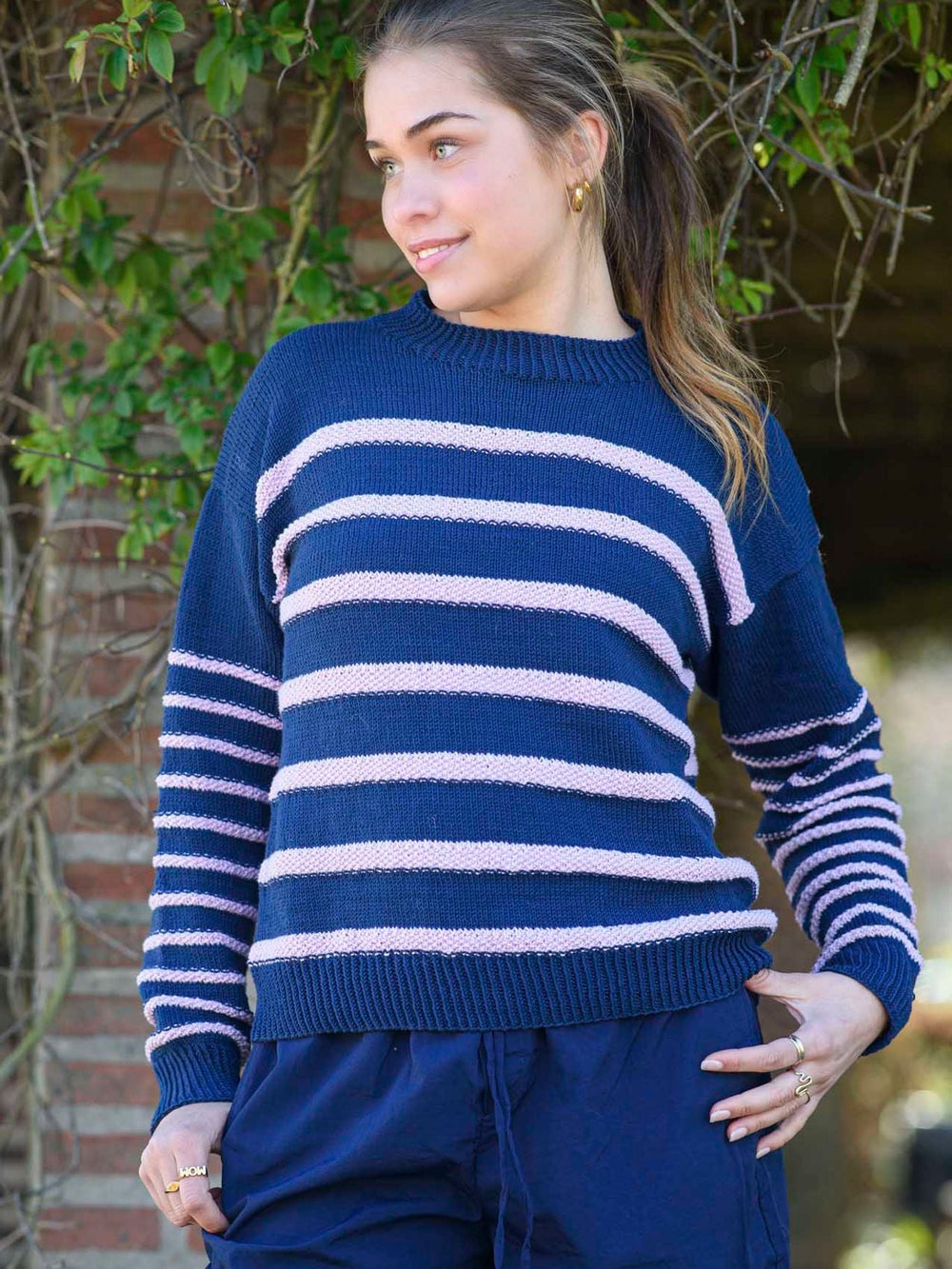 Mira trøjen er meget enkel og begyndervenlig og strikkes nedefra og op med skrå skuldre og et fint, stribet mønster. Ærmerne har smalle striber, mens striberne på kroppen er bredere og med større afstand. Striberne strikkes i perlestrik og står i flot modsætning til den glatstrikkede sweater. Den enkle Mira trøje er meget enkel men har fine detaljer, som gør den til noget for sig.