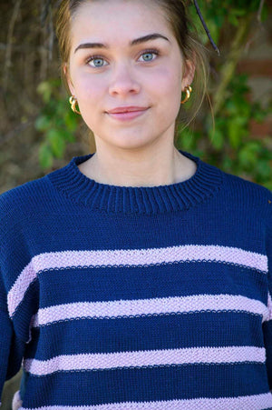 Trøjen kan også strikkes i en ulden version med tweedgarnet Mayflower Birmingham, hvor tweedgarnet giver trøjen et helt fantastisk farvespil. Find opskriften her.
