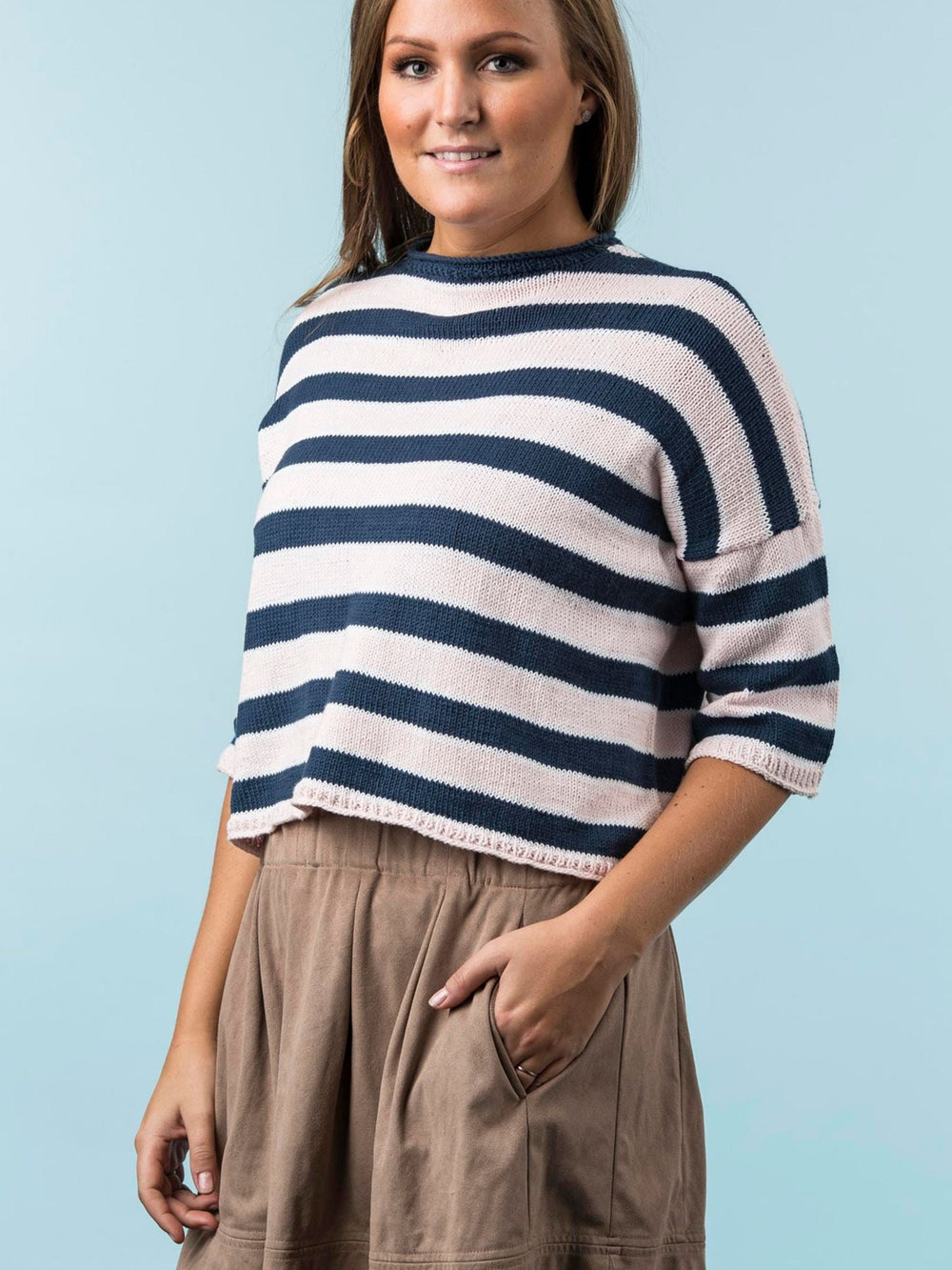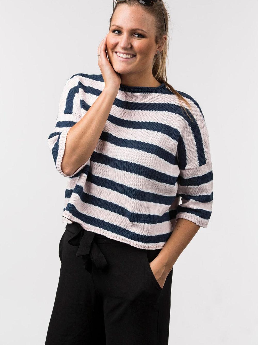 Blusen strikkes nedefra og op. Arbejdet deles ved ærmegabene, og for- og bagstykke strikkes færdige for sig. Undervejs skiftes der farver og laves striber. Ærmerne strikkes for sig og syes på. Opskriften er forholdsvis nem at gå til for begyndere, da både pasformen og striberne er super enkle detaljer.