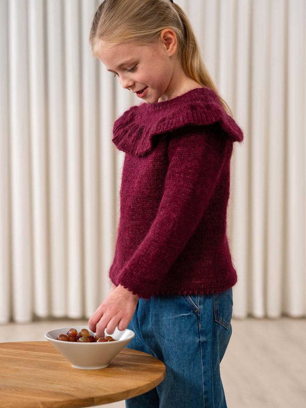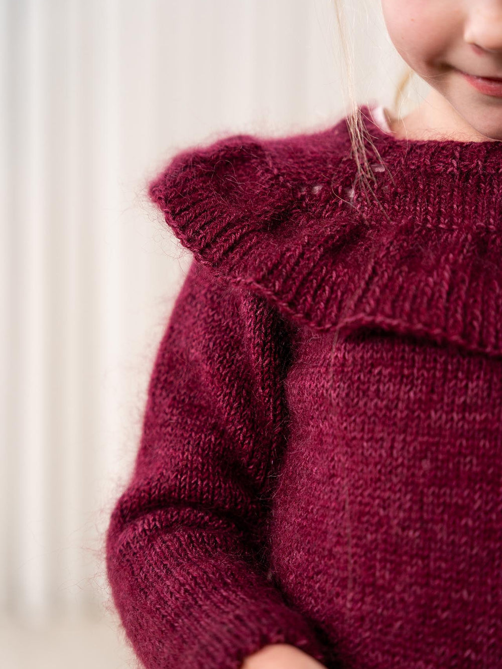 Super sød flæsebluse til børn i alderen 1-12 år. Naia blusen junior findes derudover i en voksenudgave, som du kan finde opskriften på lige her. Du kan derfor nemt strikke en virkelig fint og feminin bluse til dig selv, som matcher.