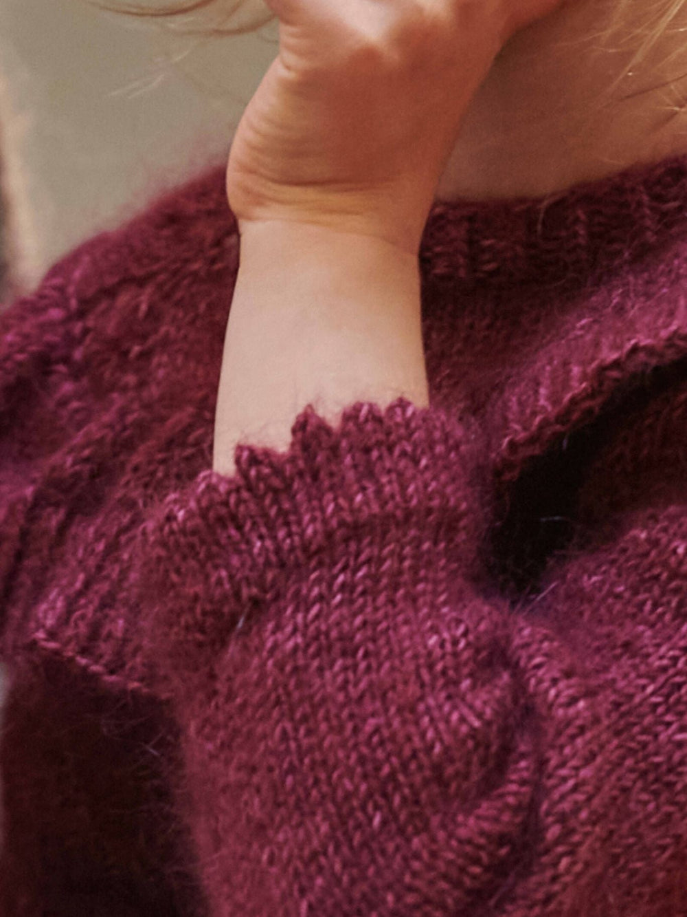 Naia blusen junior er fantastisk blød og lækker at have på og strikkes med 2 tråde: 1 tråd af det håndfarvede Mayflower Amadora + 1 tråd Mayflower Super Kid Silk. Begge garner er uldne og lune og giver tilsammen en virkelig skøn bluse, som føles dejlig mod barnets hud. Med brugen af 2 tråde kan du selv kombinere farverne. Du kan enten vælge garner, som farvemæssigt passer sammen, eller du kan sætte forskellige nuancer sammen og give den allerede smukke bluse et unikt farvespil.