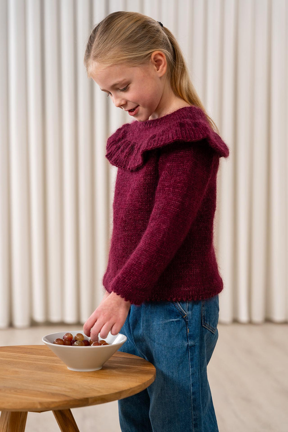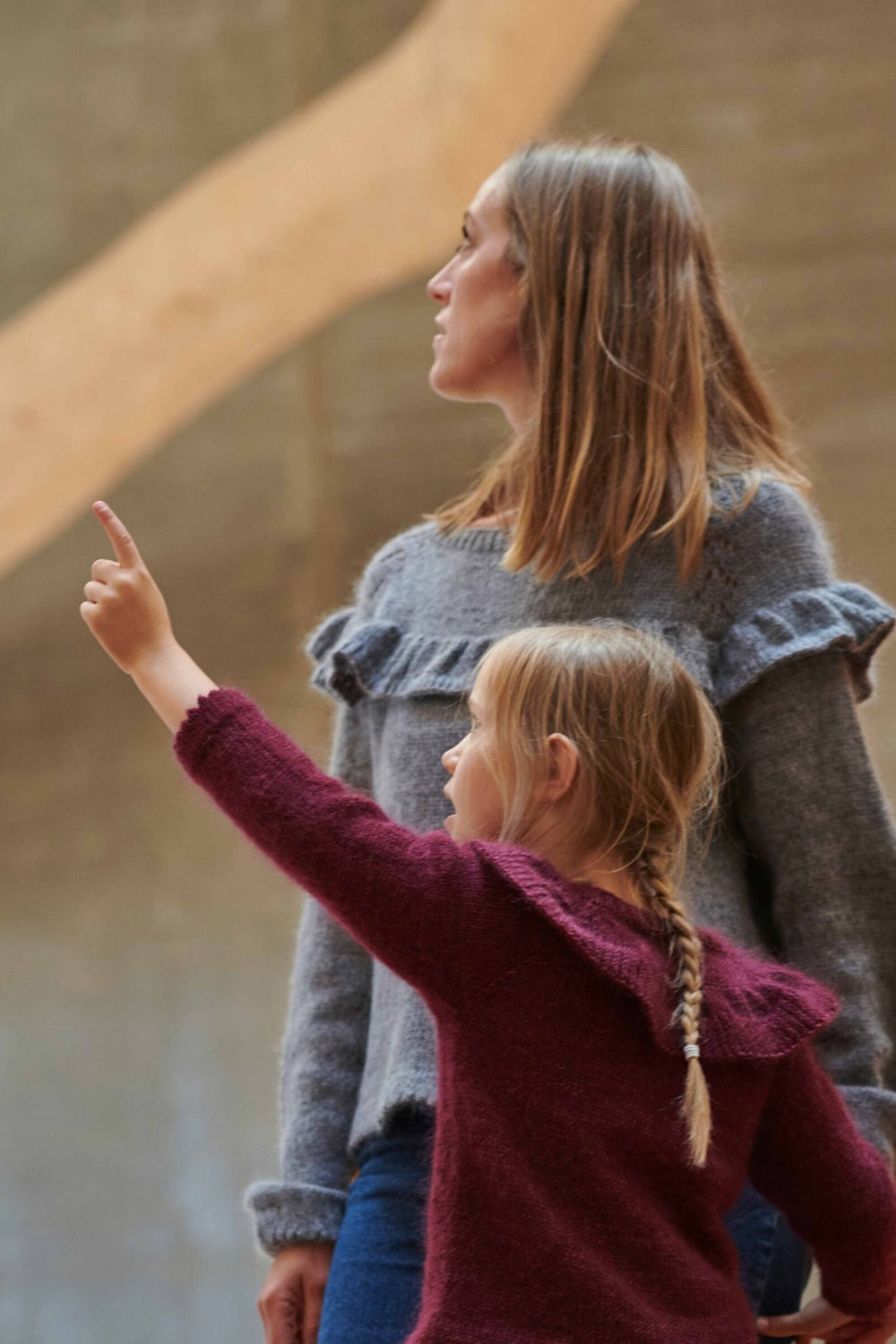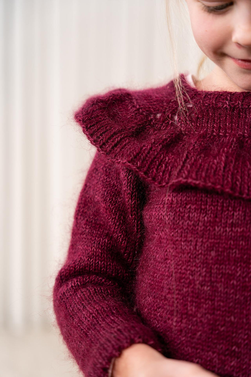 Super sød flæsebluse til børn i alderen 1-12 år. Naia blusen junior findes derudover i en voksenudgave, som du kan finde opskriften på lige her. Du kan derfor nemt strikke en virkelig fint og feminin bluse til dig selv, som matcher.