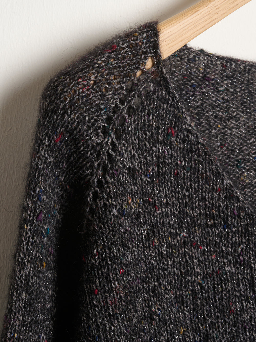 Nina Sweater er strikket i Casablanca Lux, som er en skøn garnblanding med blandt andet alpaka, uld og bomuld. Garnet suppleres også af en diskret glimmertråd, der giver en vanvittig flot effekt sammen med det børstede, uldne look, som Casablanca Lux også har.