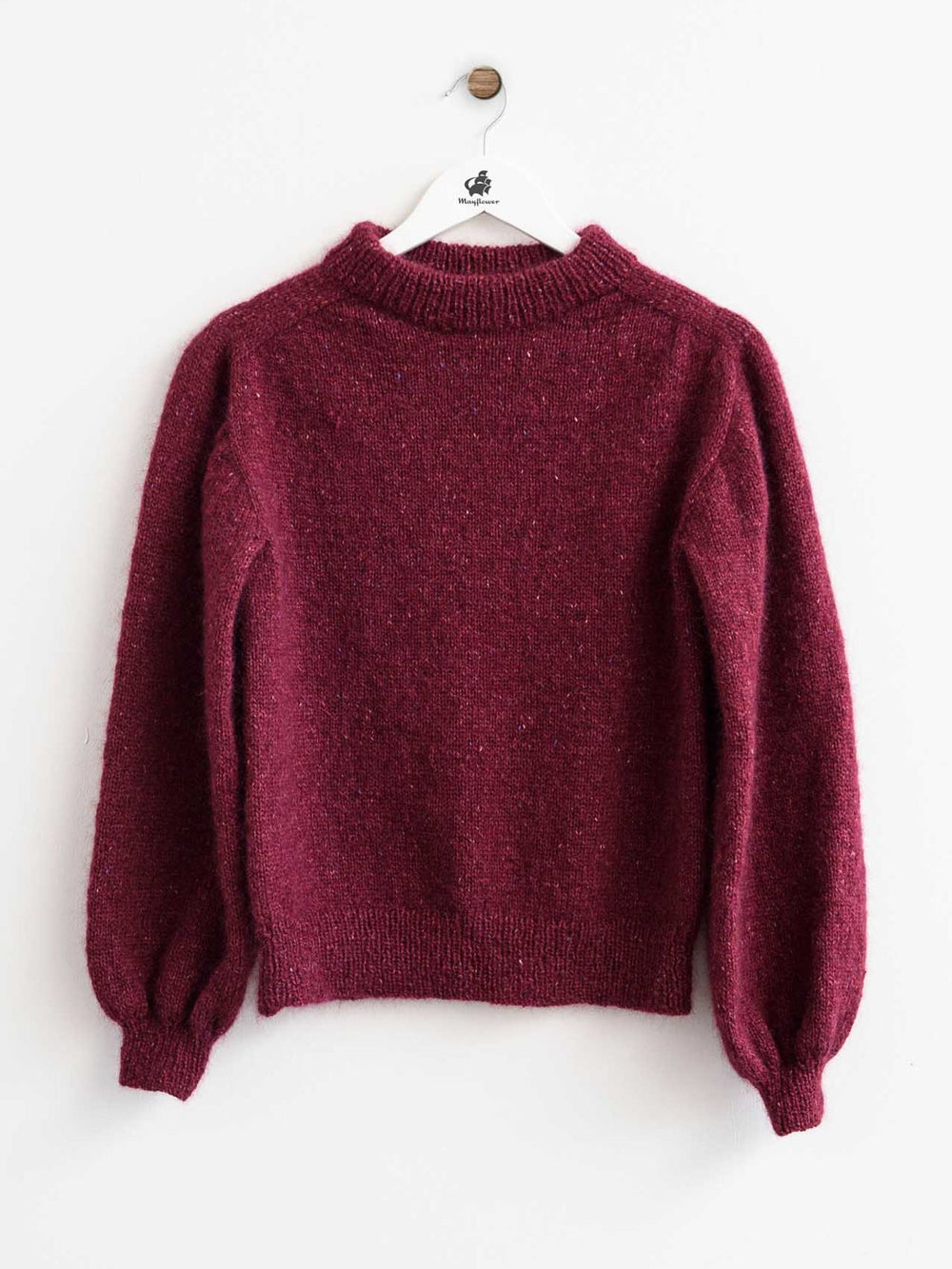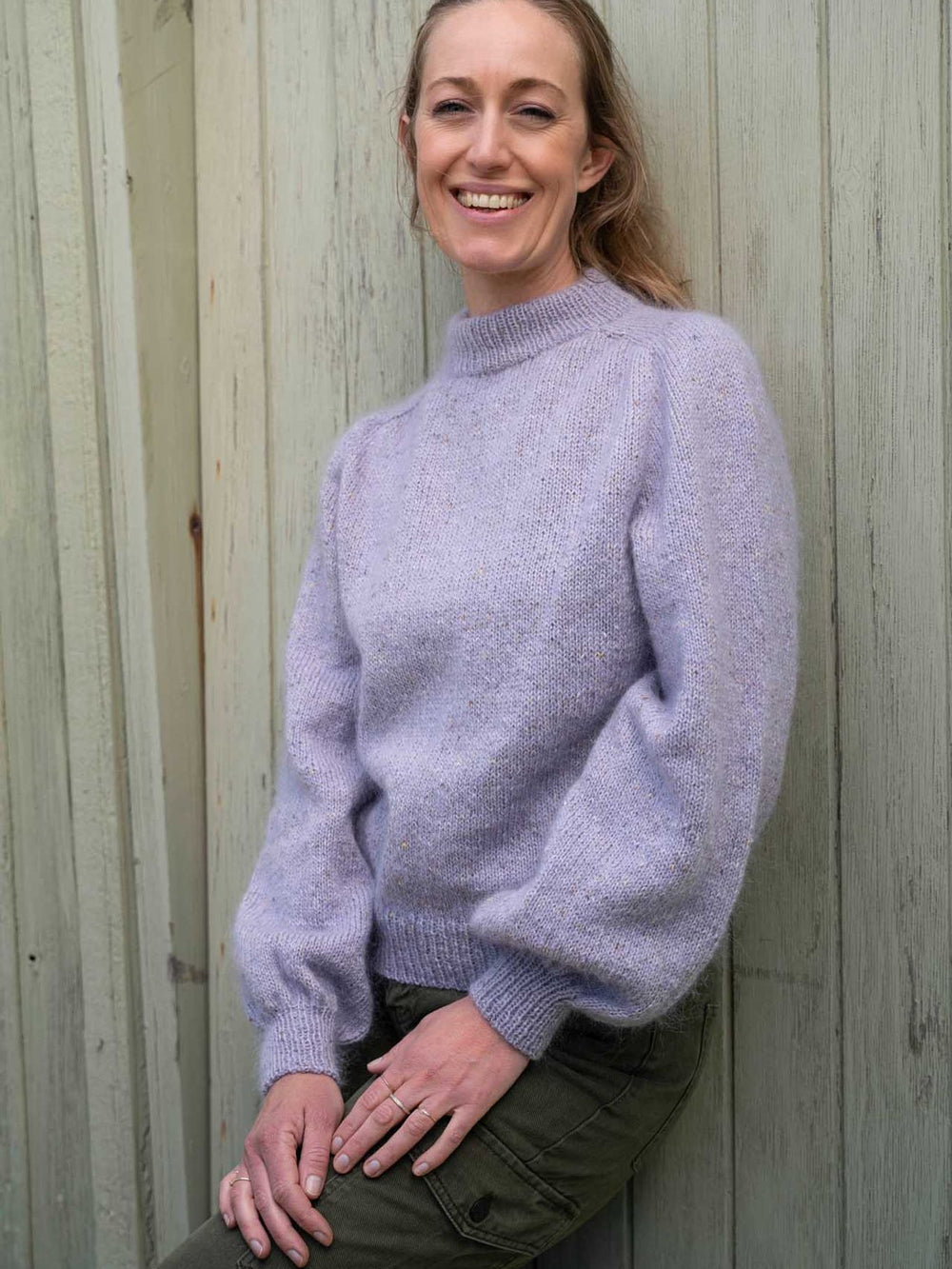 Nora Sweater er strikket i én tråd Mayflower Birmingham og én tråd Mayflower Super Kid Silk. Vores Birmingham har den flotteste tweed-effekt, som dæmpes en anelse af et fluffy mohair-skær, når den strikkes sammen med Super Kid Silk. Det giver en smuk farveeffekt, som gør Nora Sweateren ekstra charmerende.