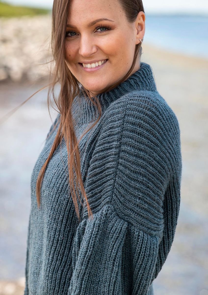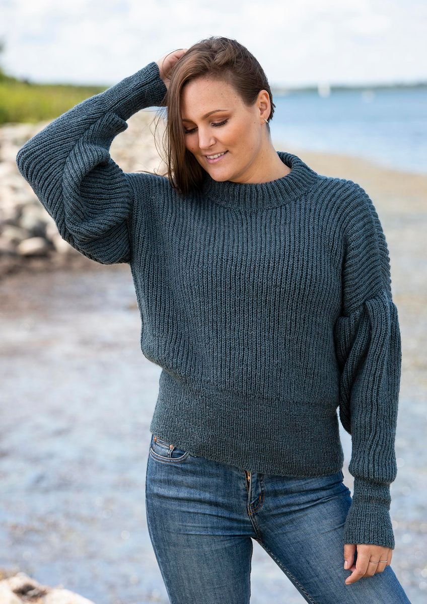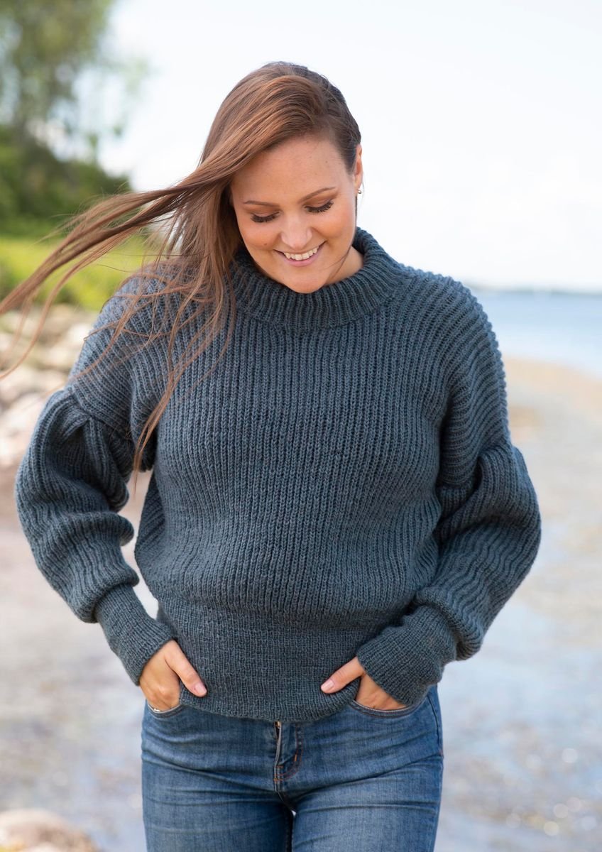 Ærmerne er det mest bemærkelsesværdige på denne sweater, og du bør især lægge mærke til de ekstra brede ribkanter, som sammen med udtagninger får ærmerne til at blive endnu mere posede. På trods af dette posede look bliver de stadig samlet på skuldrene med en flot og raffineret læg.