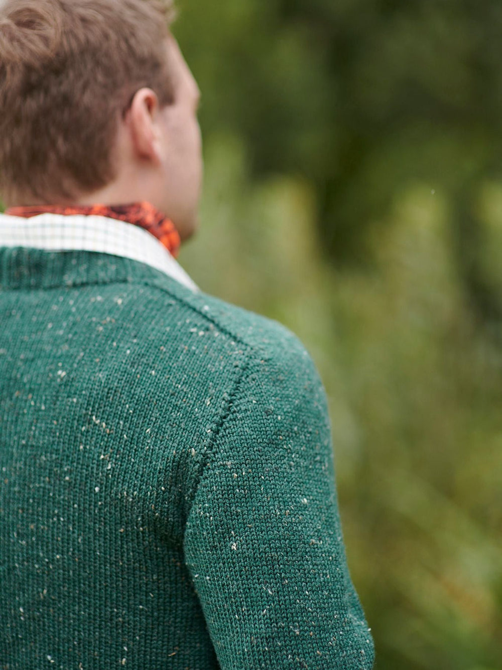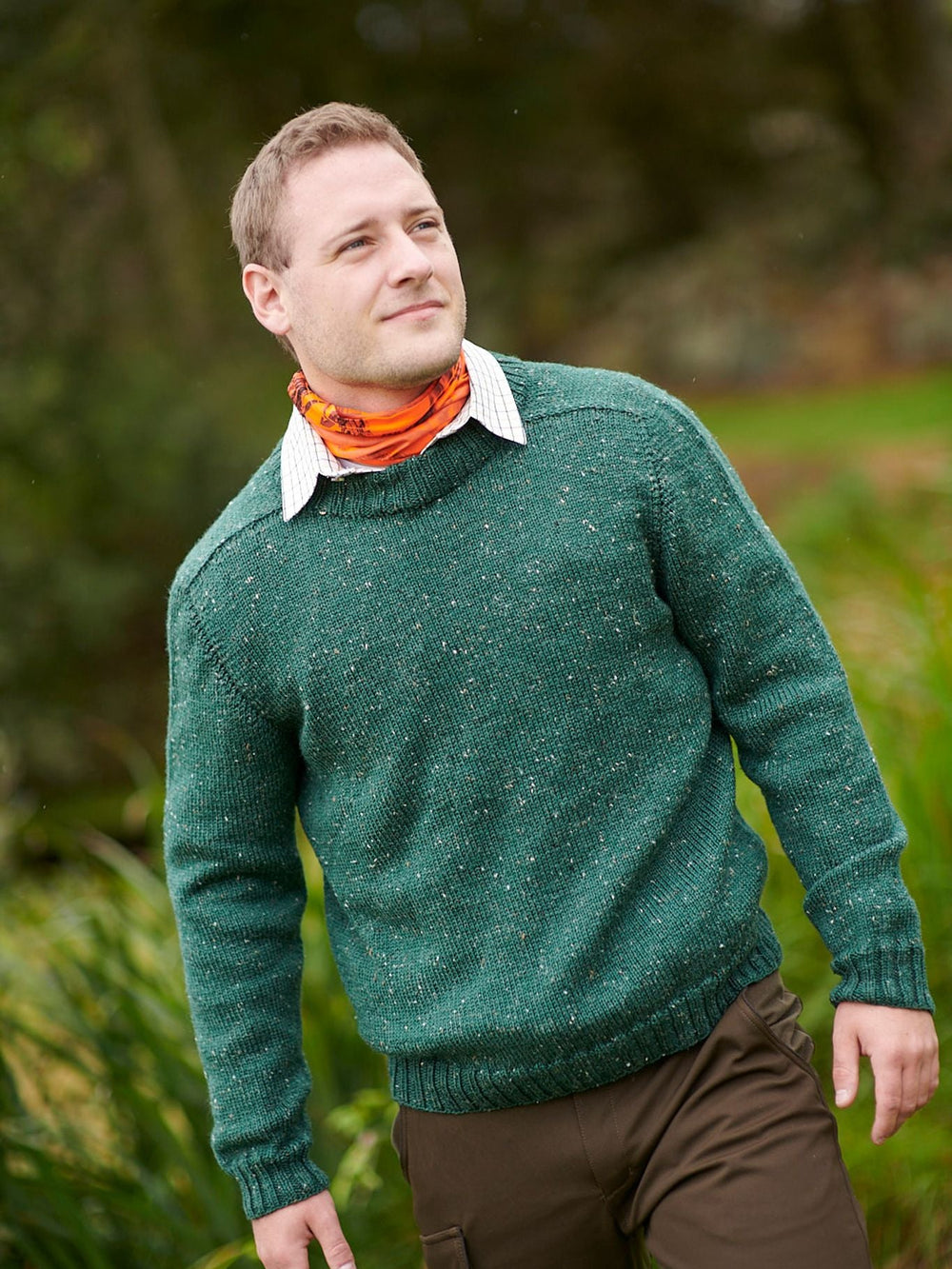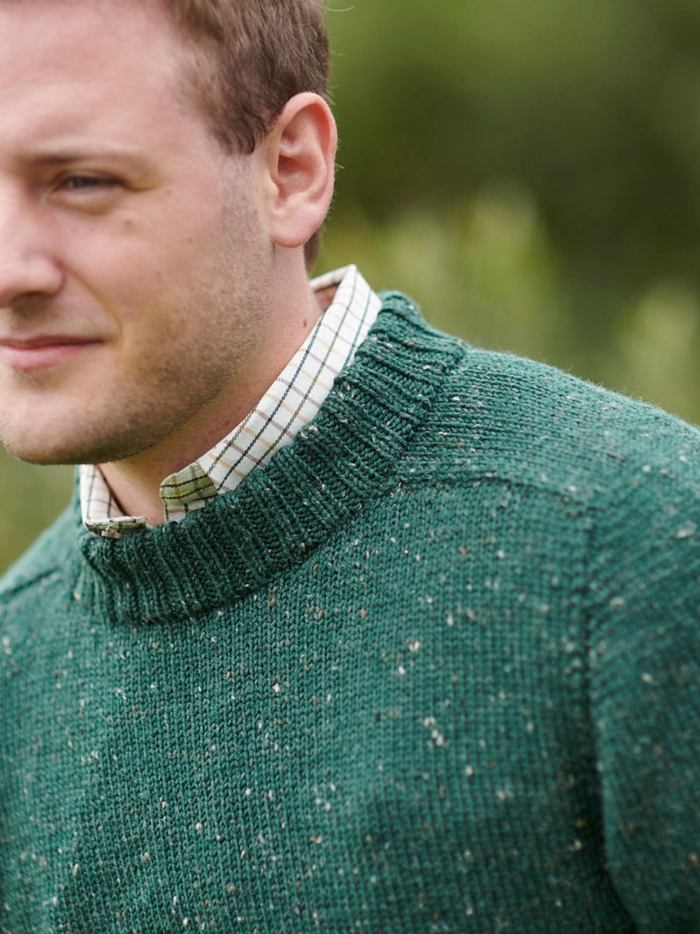 Peter sweateren er en virkelig skøn, ulden trøje, som strikkes i en blød garnkvalitet med tweednister. Sweateren strikkes oppefra og ned med sadelskuldre og brede ribkanter. Sweateren strikkes i tweedgarnet Mayflower Easy Care Classic Tweed. Det uldne garn er et godt valg til denne jagtsweater, som uld er en både lun og åndbar fiber. Sweateren vil derfor varme godt, mens den samtidig også vil lade kroppen ånde, hvilket er en fordel for jægere, som kan være ude i al slags vejr. De mange tweednister giver mere dybde og farvespil til sweateren.