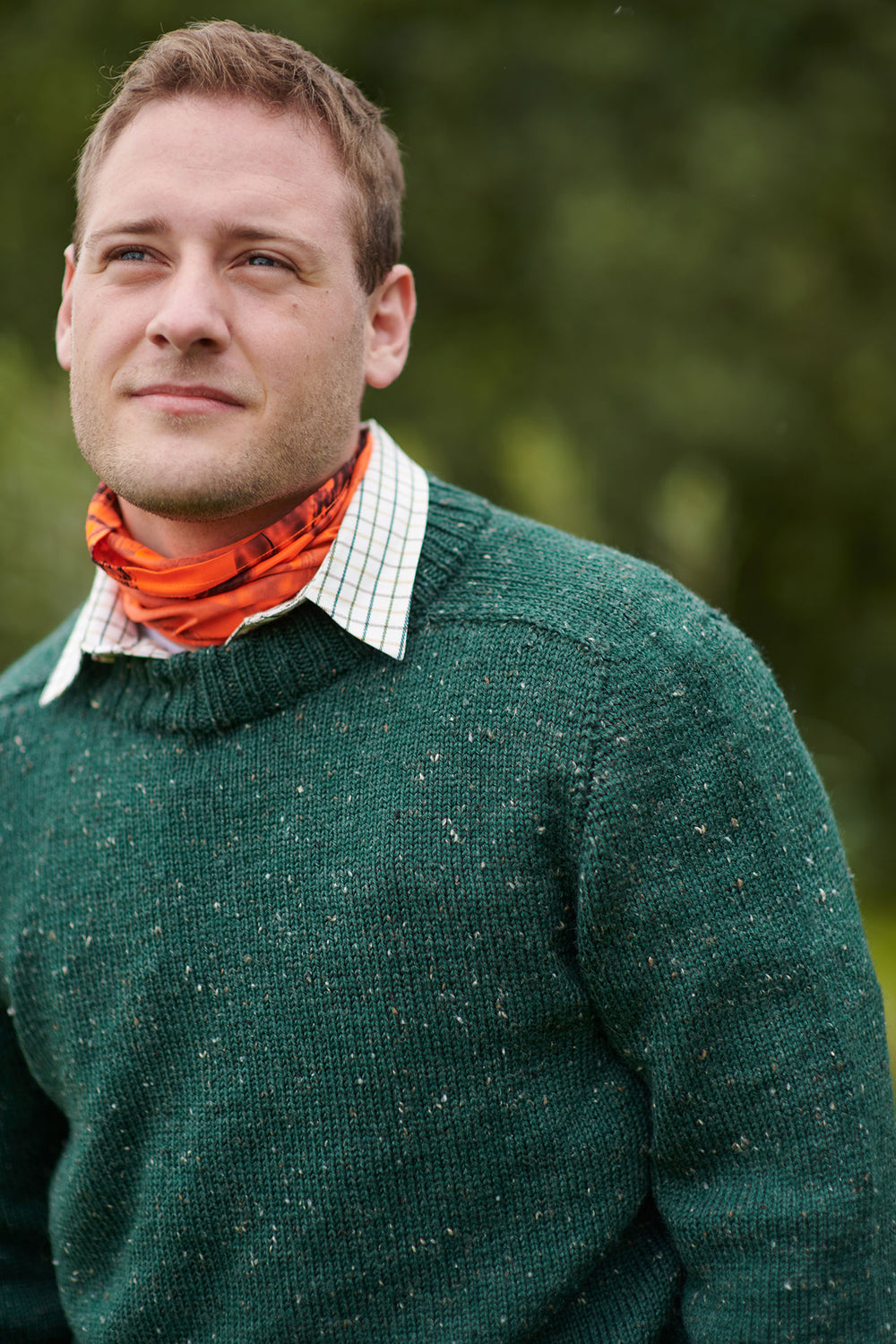Peter sweateren er en virkelig skøn, ulden trøje, som strikkes i en blød garnkvalitet med tweednister. Sweateren strikkes oppefra og ned med sadelskuldre og brede ribkanter. Sweateren strikkes i tweedgarnet Mayflower Easy Care Classic Tweed. Det uldne garn er et godt valg til denne jagtsweater, som uld er en både lun og åndbar fiber. Sweateren vil derfor varme godt, mens den samtidig også vil lade kroppen ånde, hvilket er en fordel for jægere, som kan være ude i al slags vejr. De mange tweednister giver mere dybde og farvespil til sweateren.