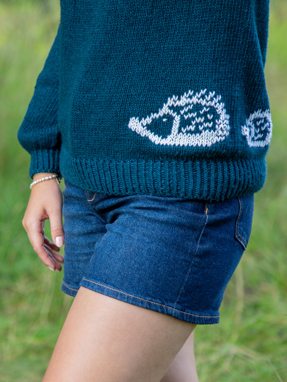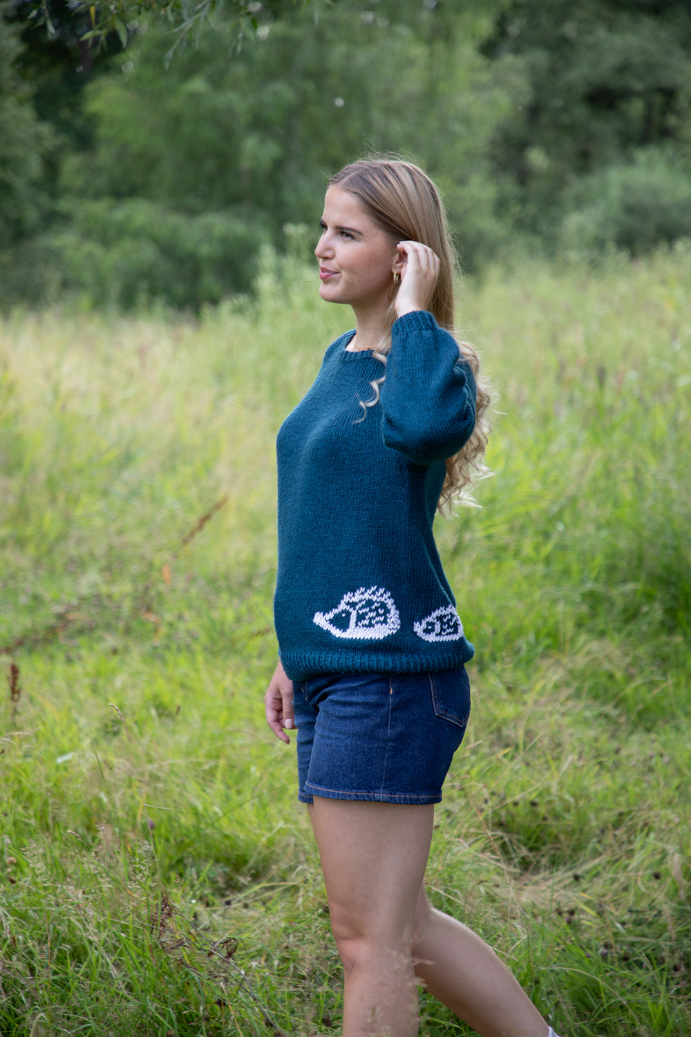 Pindsvine-sweateren er en meget begyndervenlig opskrift, som er lavet i samarbejde med WWF Verdensnaturfonden. Sweateren strikkes oppefra og ned uden montering, og pindsvinene broderes på til sidst. Da sweateren strikkes top-down, er det også nemt at tilpasse længden på både krop og ærmer.