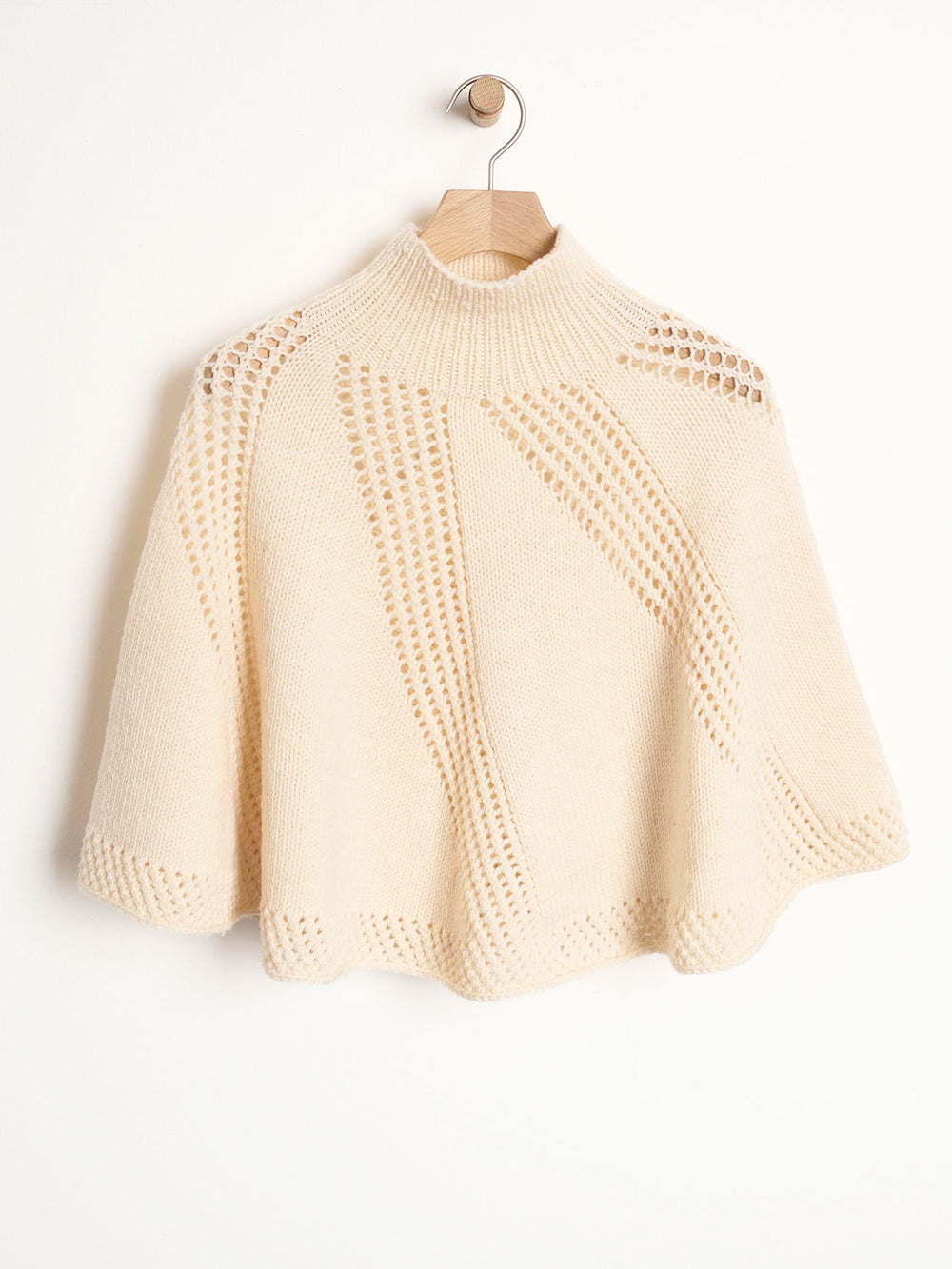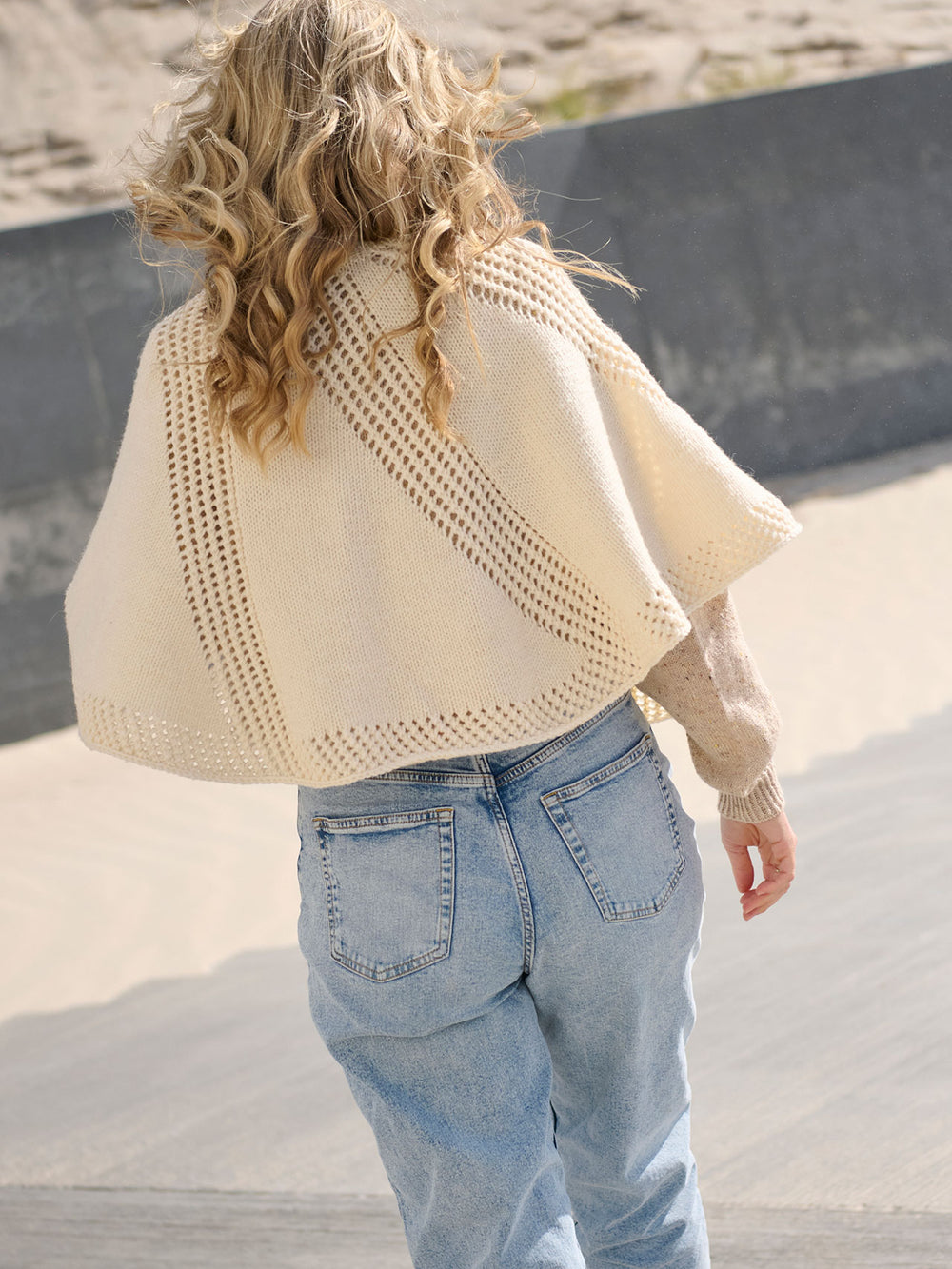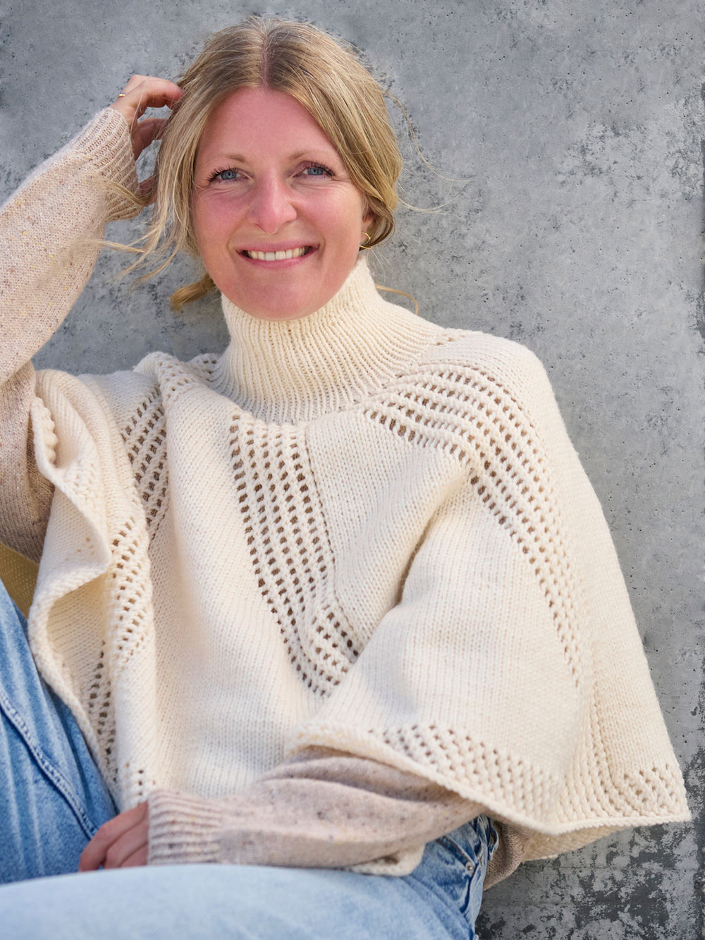 Opskriften indeholder to forskellige versioner af ponchoen – en kort mode, som kan bruges under vinterfrakken eller en længere model, som bruges for sig selv.