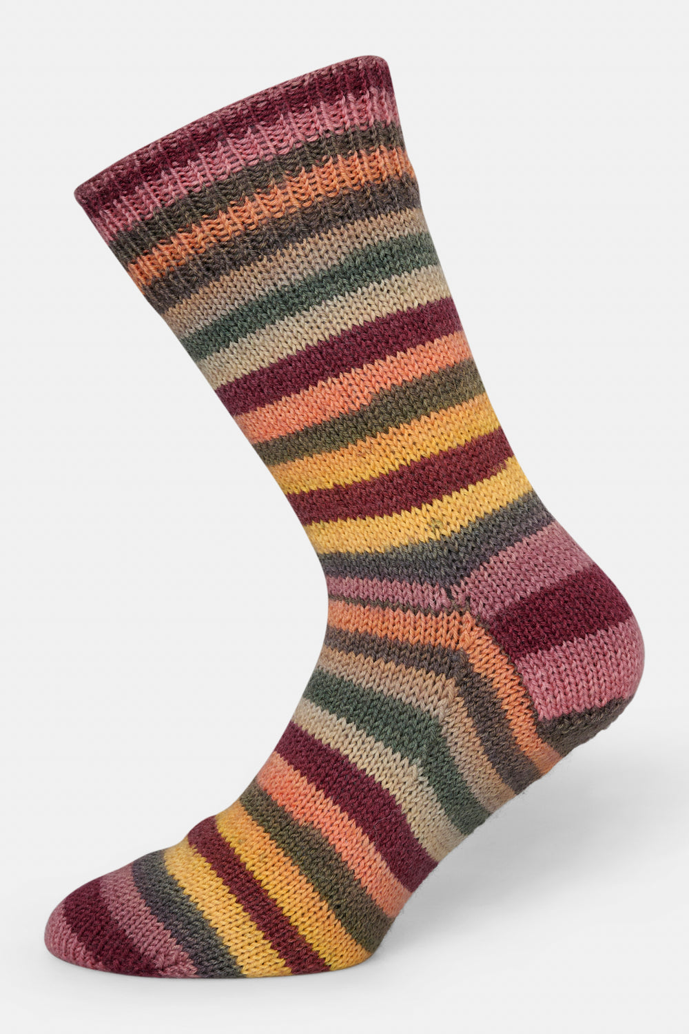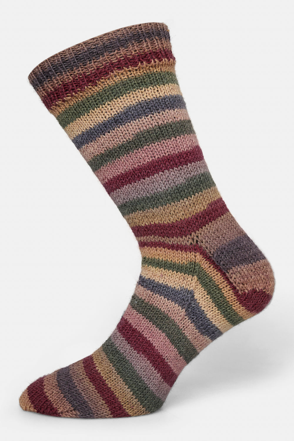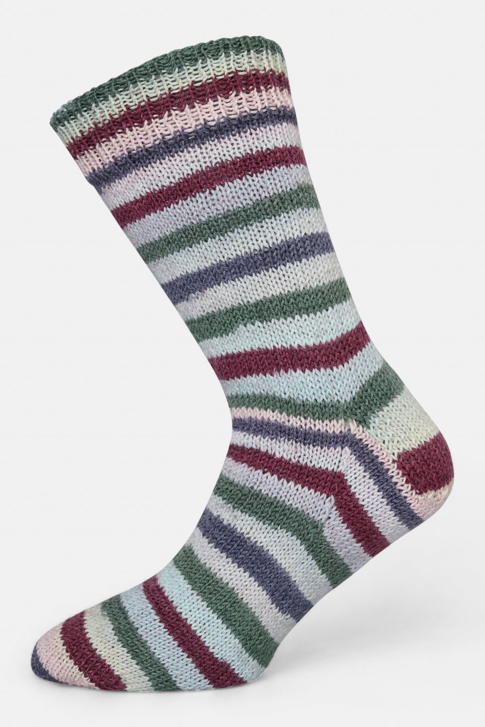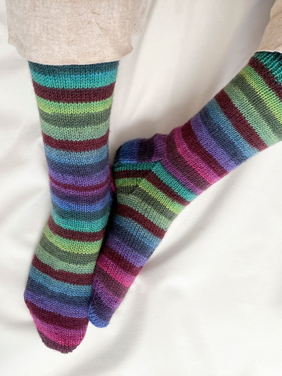 Strømperne er strikket i det skønne strømpegarn, Mayflower Premium Sock Wool Ocean, som er spundet med 75% varm uld og 25% slidstærk polyamid. Den lækre uld sørger for varme fødder, mens polyamiden giver høj slidstyrke og strømper til flere års brug. Med andre ord er Premium Sock Wool et strømpegarn af meget høj kvalitet. Ocean-serien giver strømperne et stribet mønster.