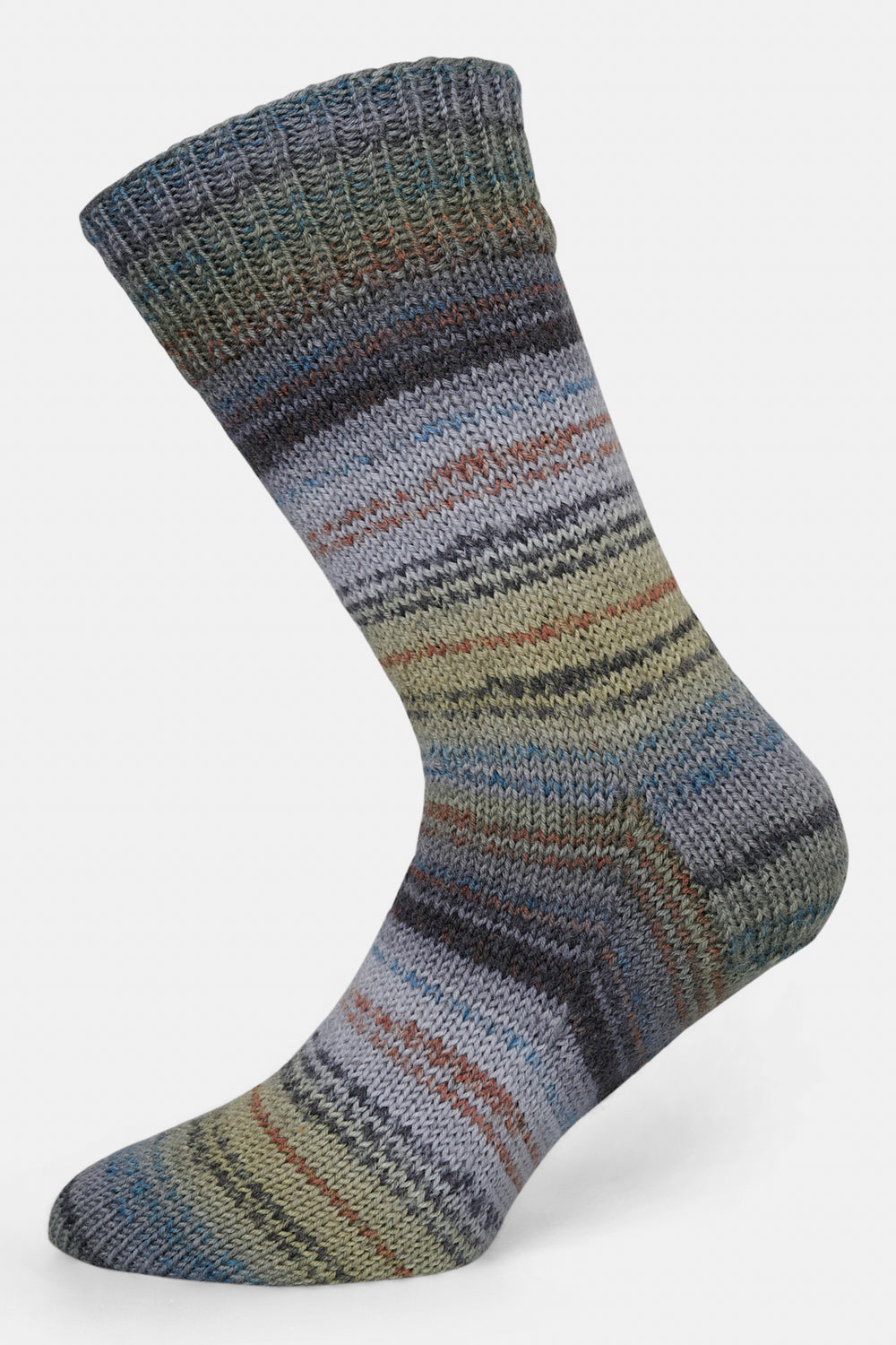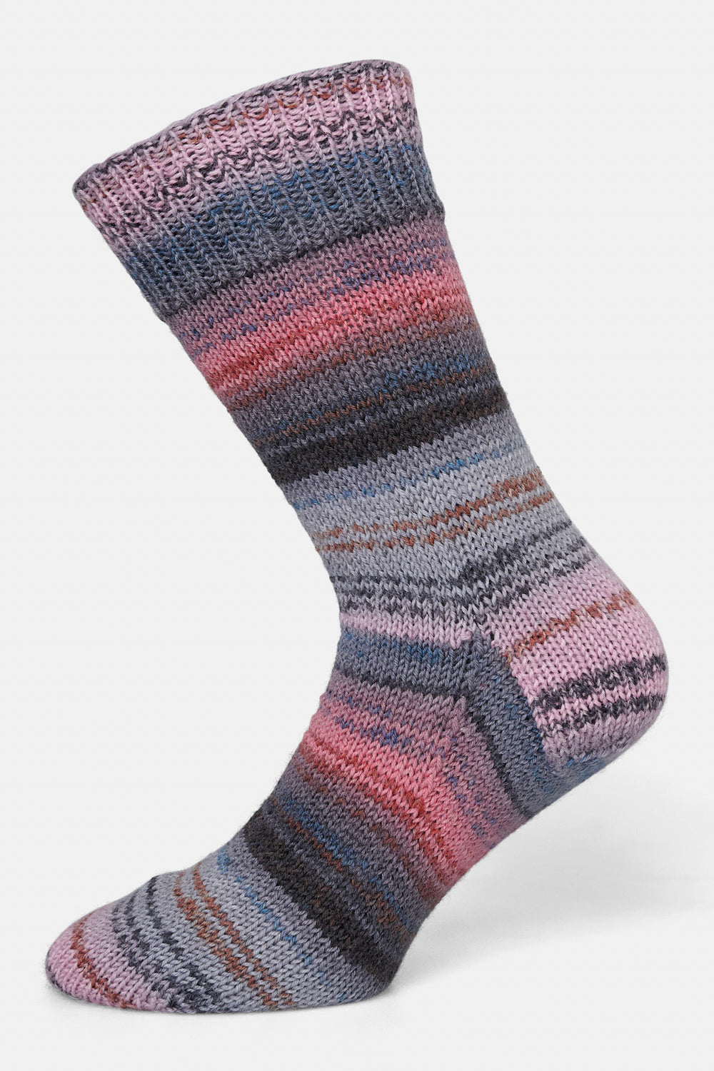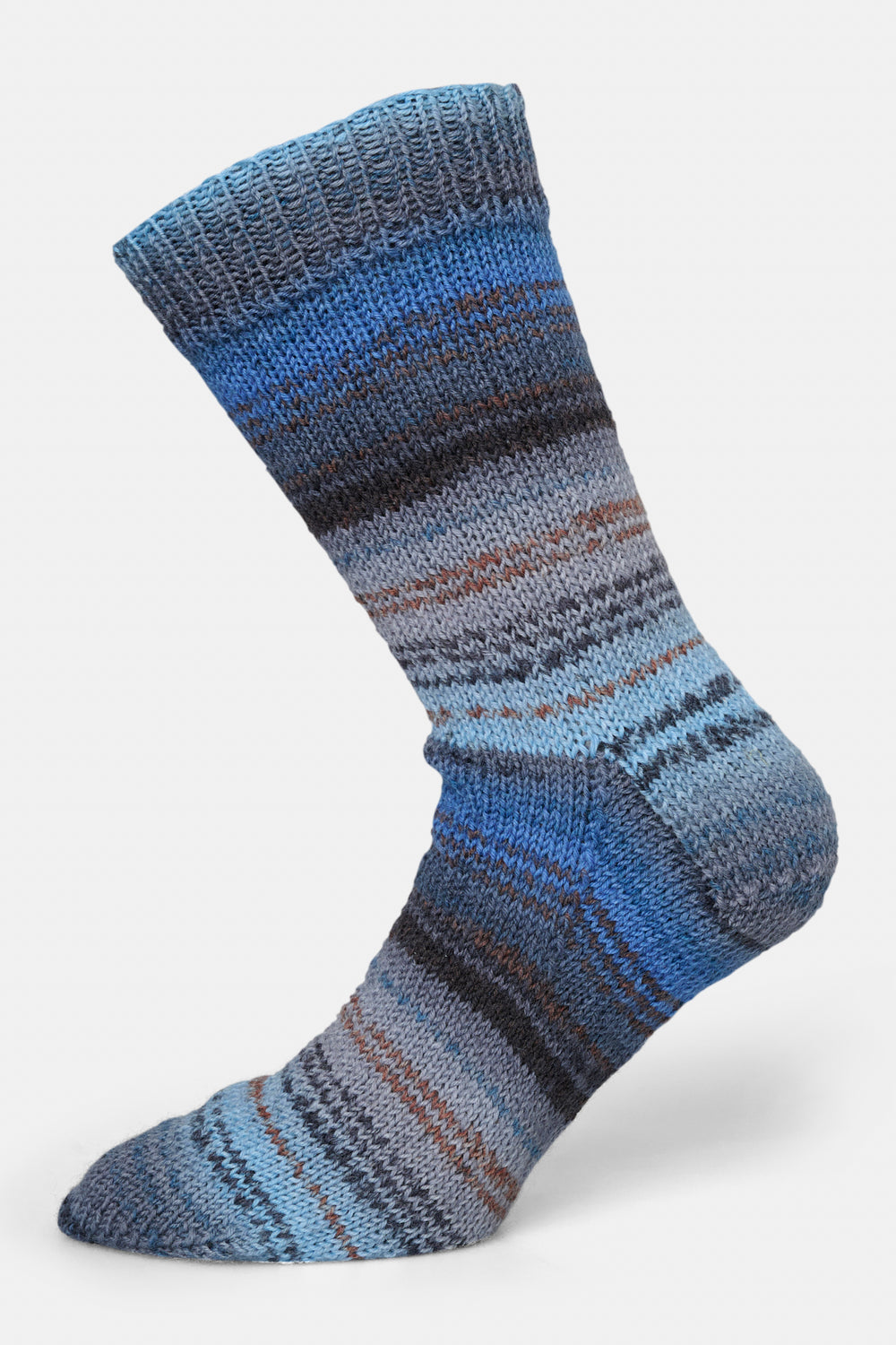 Med dette garn er du sikret dejligt varme strømper, som kan holde til flere års brug, da garnet er spundet med lange fibre for at øge slidstyrken. Printmønsteret i serien Valley sørger for, at strømperne har det fineste mønster i flotte, afstemte farver.