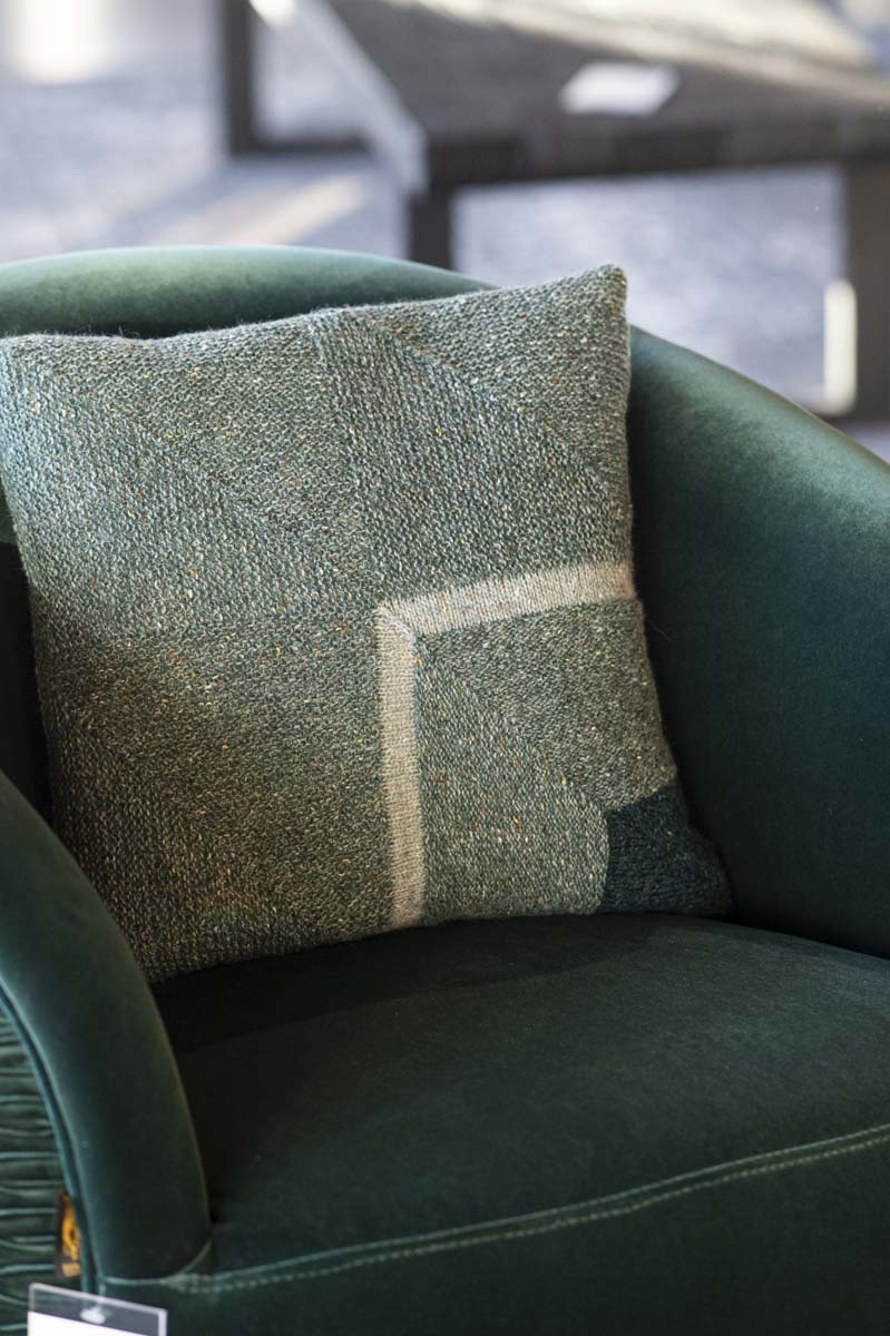 Pudebetrækket strikkes i Mayflower Birmingham, som er et blødt og uldent tweedgarn i en tynd kvalitet. Den færdige pude bliver derfor behageligt blød og dejlig at røre ved samt sidde eller ligge med. Pudebetrækket laves med tre forskellige farver, hvilket giver en flot farveeffekt. Birmingham kommer i flere fine nuancer, som spiller flot sammen med hinanden.