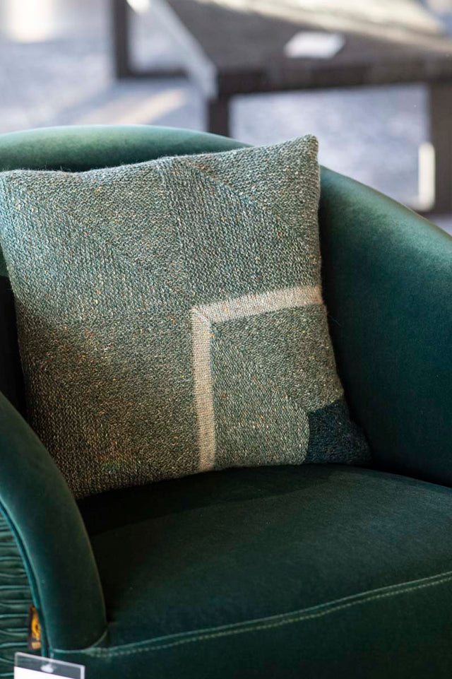 Strik et matchende pude i dominostrik med flere små kvadrater. Find opskriften lige her.