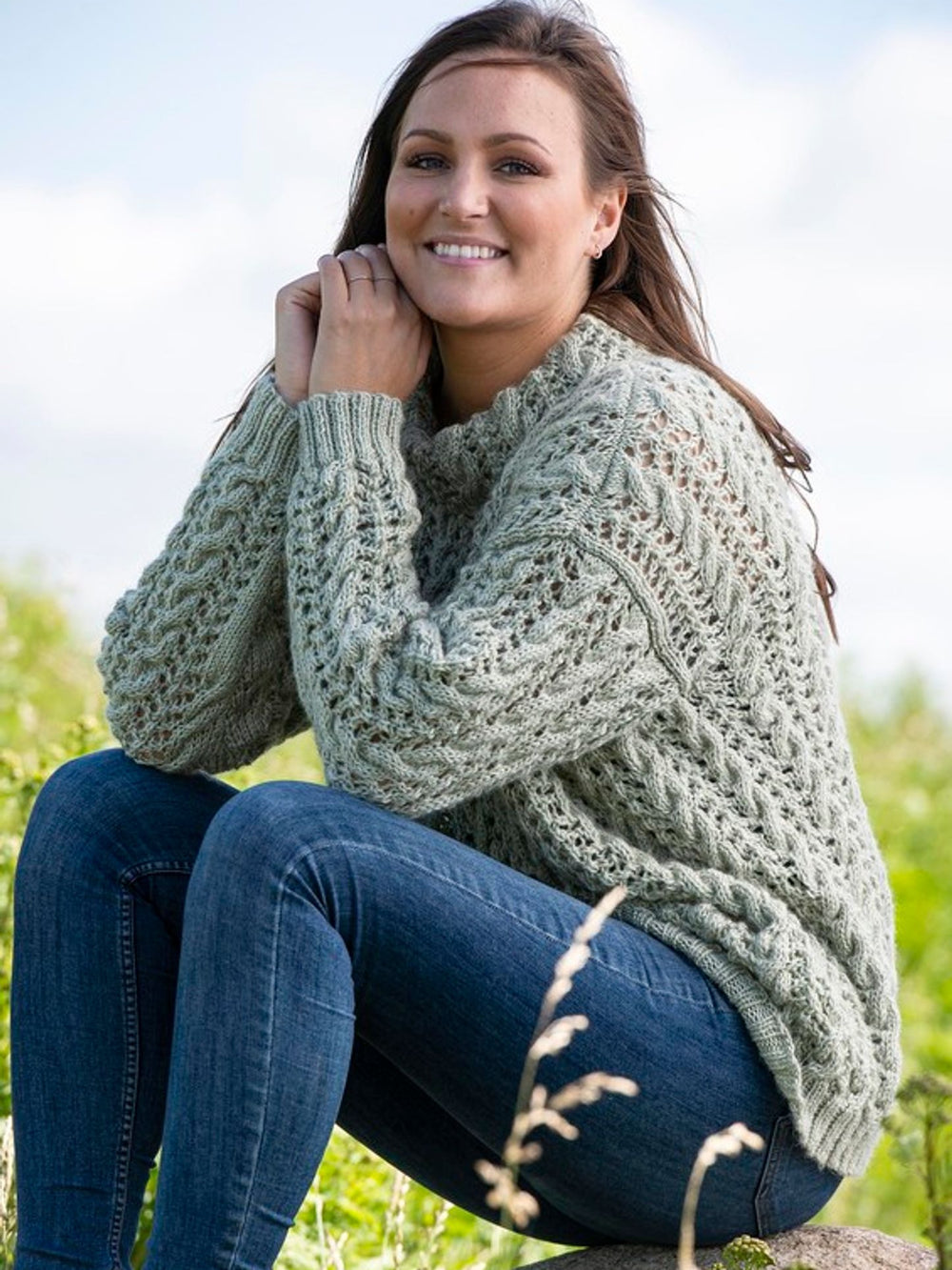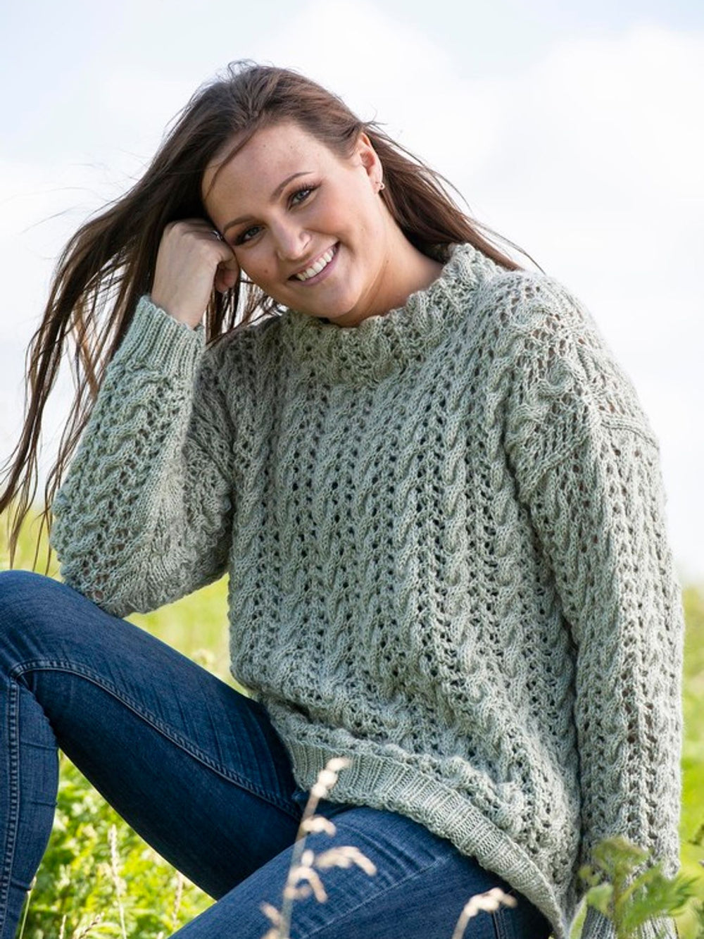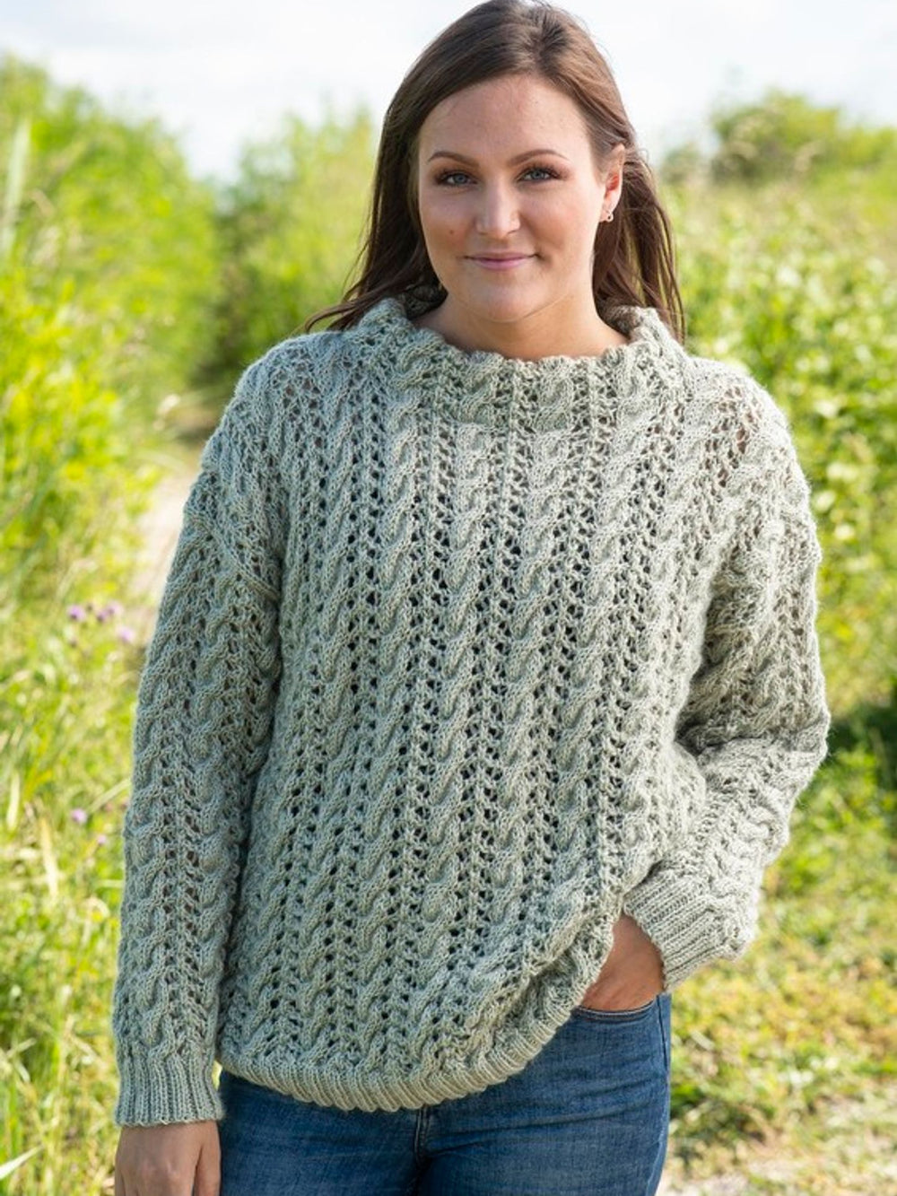Let, luftig og særdeles feminin sweater, som er strikket i Mayflower Easy Care Big. Dette design har enormt flotte detaljer, der kommer til udtryk i det smukke hulmønster samt de sirlige snoninger. Sweateren egner sig helt sikkert til det barske vintervejr, men kan også bruges som elegant, casual aftenbeklædning.