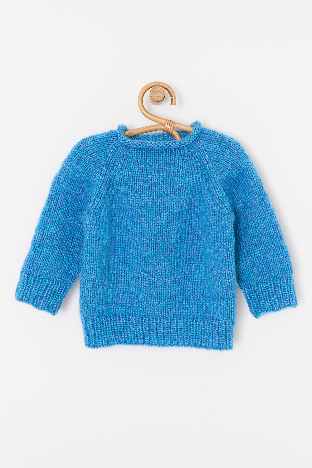 En klassisk raglansweater til børn, der er skøn at varme sig på. Sweateren er strikket oppefra og ned i glatstrik med udtagninger til raglan, ribkanter og rullekant i halsen.