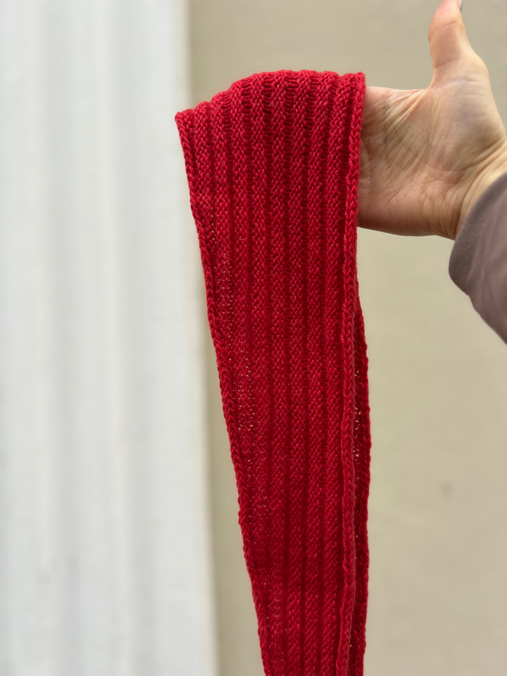 Rhombe scarf er strikket i Mayflower Premium Merino Silk med en følgetråd af enten Mayflower Premium Cassandra eller Mayflower Elba.