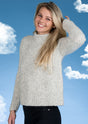 En enkel sweater, som er strikket i ribstrik i det luftige Mayflower New Sky, som består af uld, alpaka og polyamid.