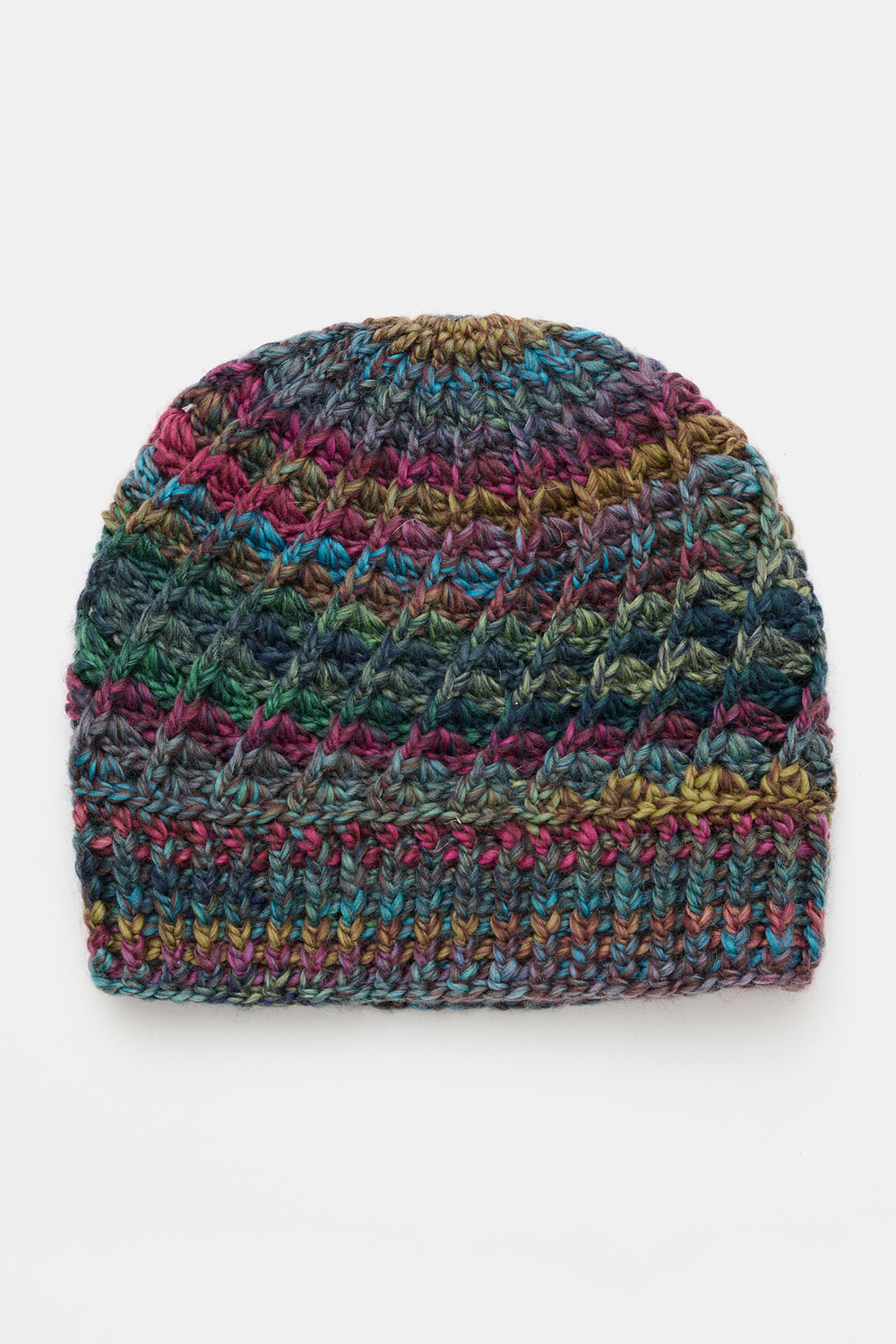 Huen har et flot, stribet farveskifte, som dannes helt automatisk, da huen hækles i den vidunderlige uldkvalitet Mayflower Premium Maxima. Et eksklusivt uldgarn, som er spundet på ekstrafin merinould, og som fås i mange skønne farver.