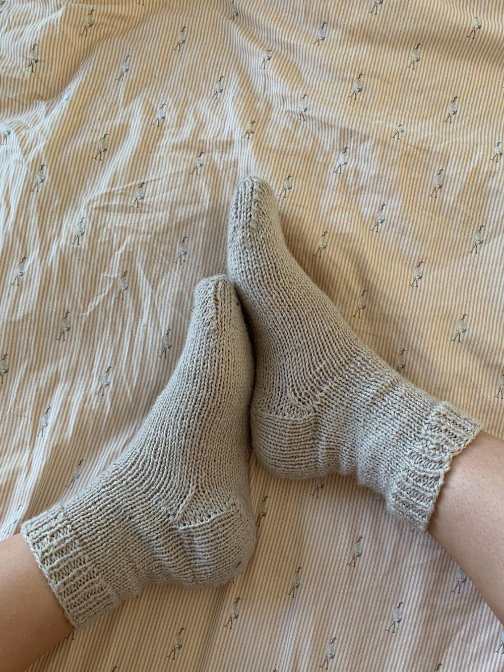 En blød basissok, der strikkes i 2 tråde Mayflower 1 Class på pind 4. Perfekte til at holde fødderne varme på de kolde dage.