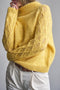 Sweateren har en super let og luftig struktur, da den strikkes i Mayflower Anyday Breezy, som er en fluffy uldblanding med god volumen. Garnet er blødt og lækkert, og Rønbjerg bluse føles derfor skøn at have på. Sweateren har et bevægelsesrum på omkring 30 cm.
