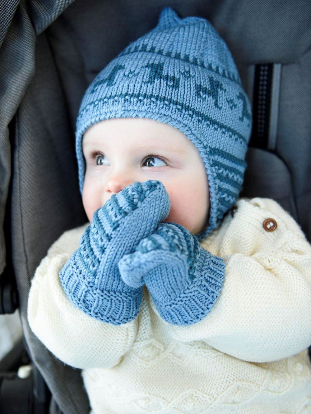 Scottie Peru vanterne er et gammelt design (114-8), som vi har strikket op i et andet garn end det oprindelige Hit Tatoo, som er en udgået garnkvalitet. Lufferne eller vanterne er perfekte til de små hænder, som skal holdes varme, og lufferne har et fint stribet mønster på oversiden.