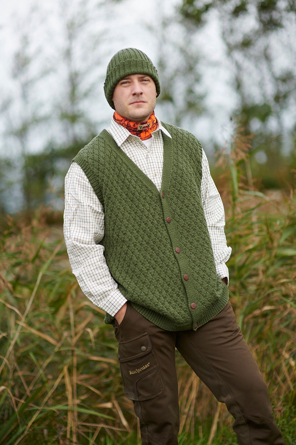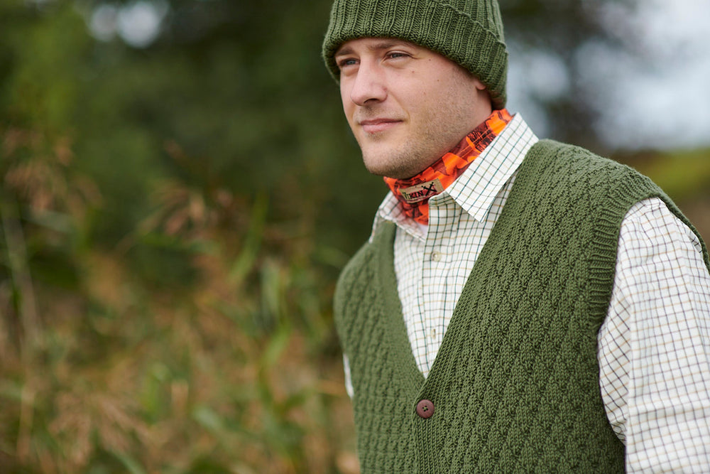 Lækker herrevest, som strikkes med et ternet strukturmønster, som er nemt at gå til. Vesten lukkes med knapper og strikkes nedefra og op. Vesten strikkes i Mayflower London Merino, som er spundet på enormt blød merinould i god kvalitet. Ulden er lun og isolerende og derfor det ideelle valg til en design som dette, som fx kan bruges udendørs på en jagttur, hvor det handler om at kunne holde varmen i alt slags vejs. Vesten er også nem at få på og af alt efter temperaturen.