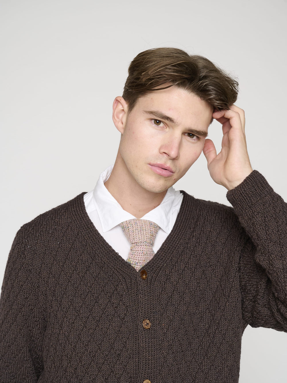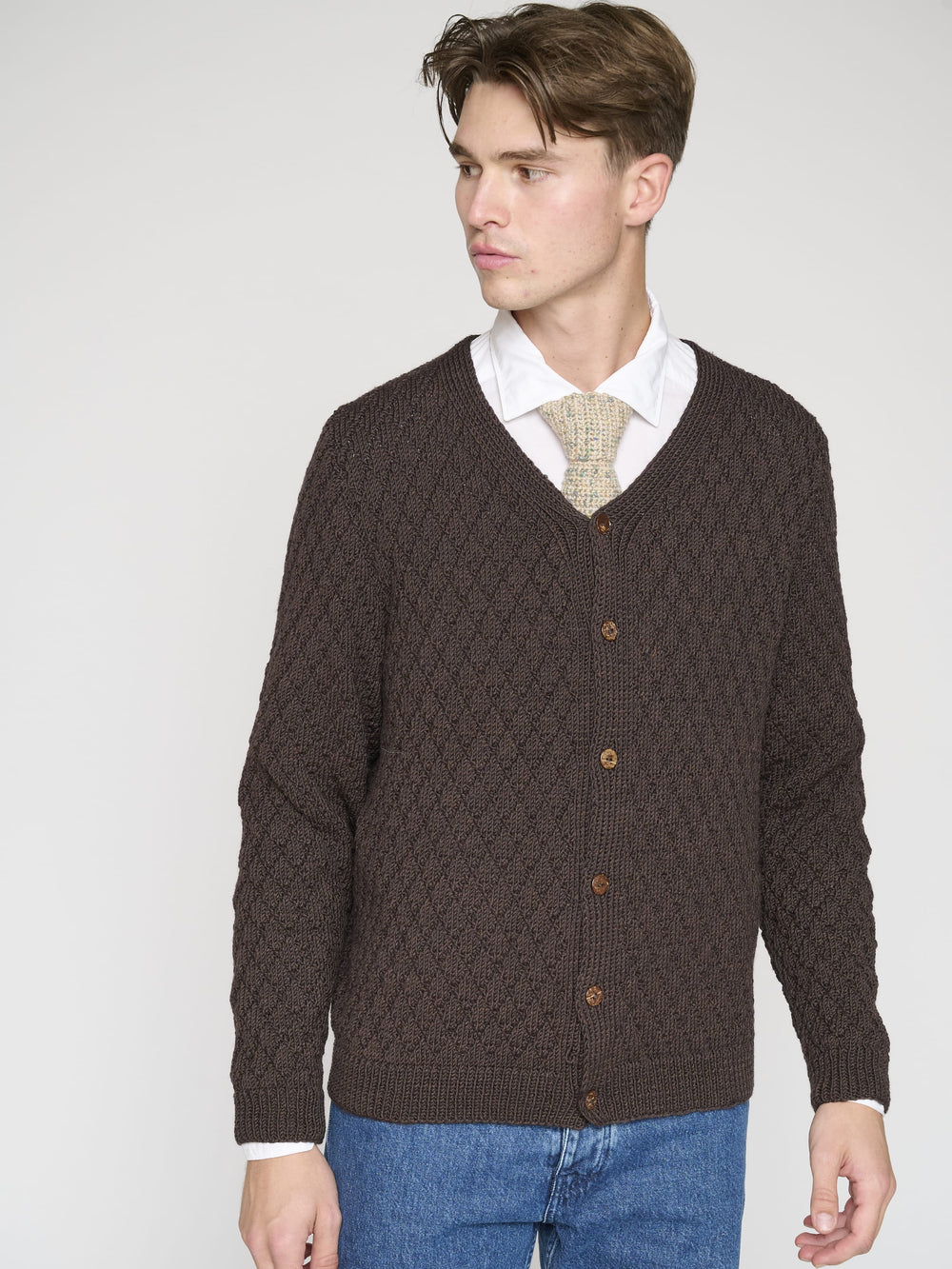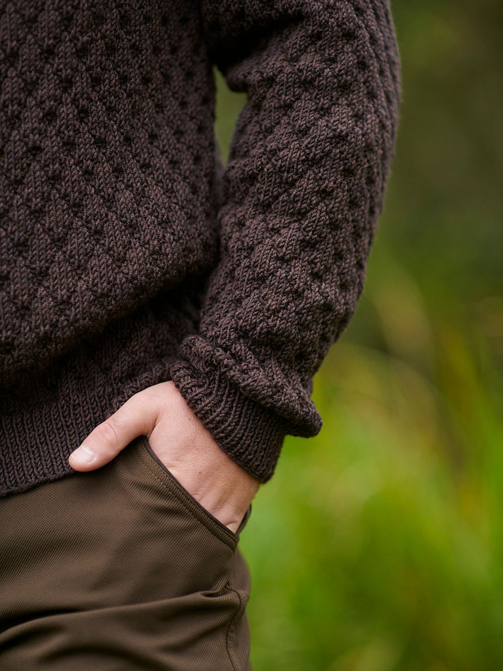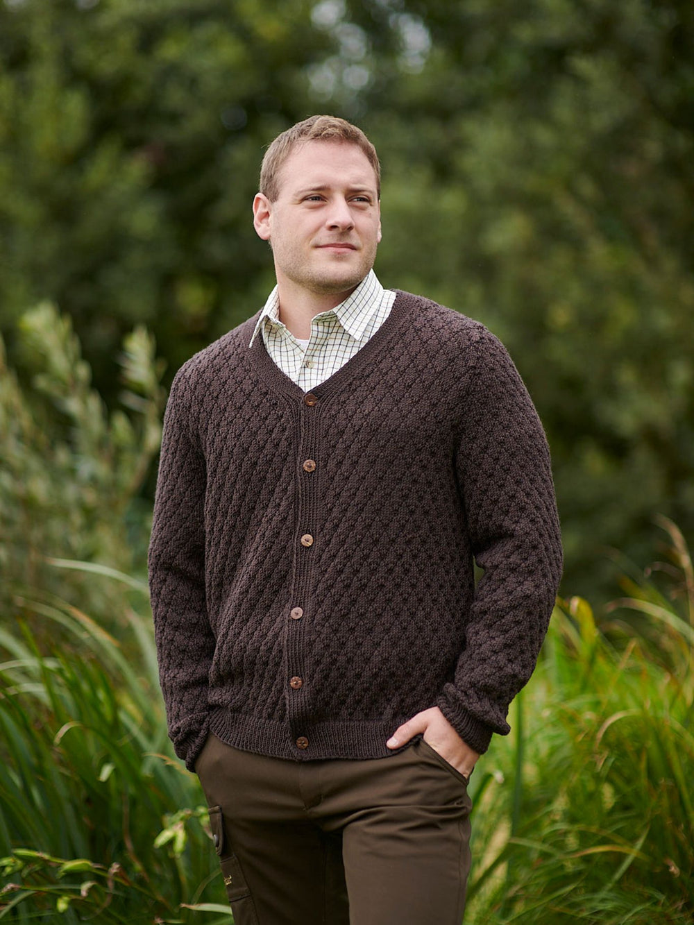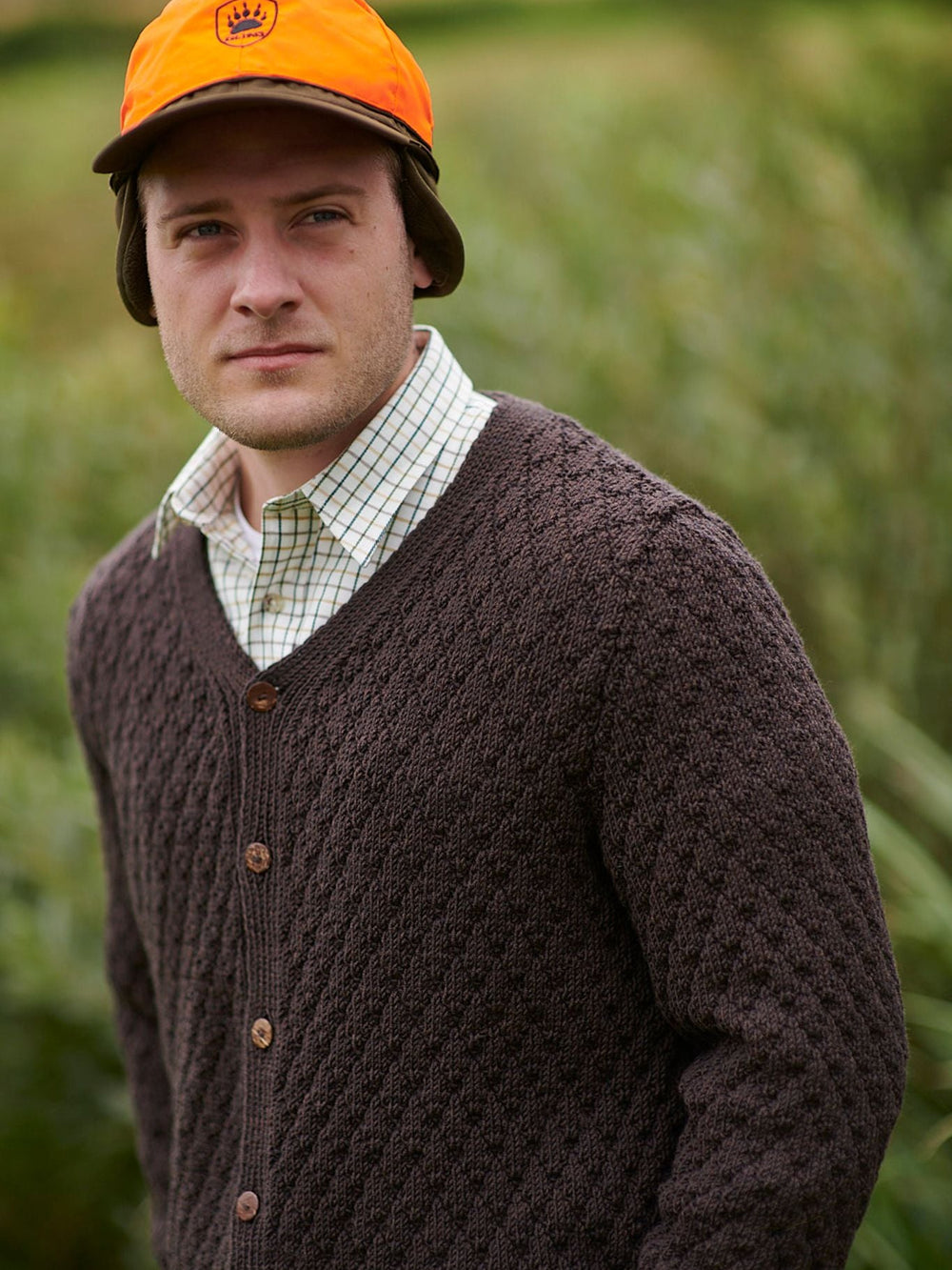 Lækker og begyndervenlig cardigan med strukturmønster til herrer. Cardiganen strikkes nedefra og op og monteres med knapper. Denne Hans cardigan strikkes i Mayflower London Merino, som er 100% blød og fin merinould. Den lune uld er isolerende og derfor et rigtig godt valg til et design som dette, som sagtens kan bruges udenfor til fx en jagttur. London Merino fås i mange flotte farver - bl.a. også neutrale og jordfarver.