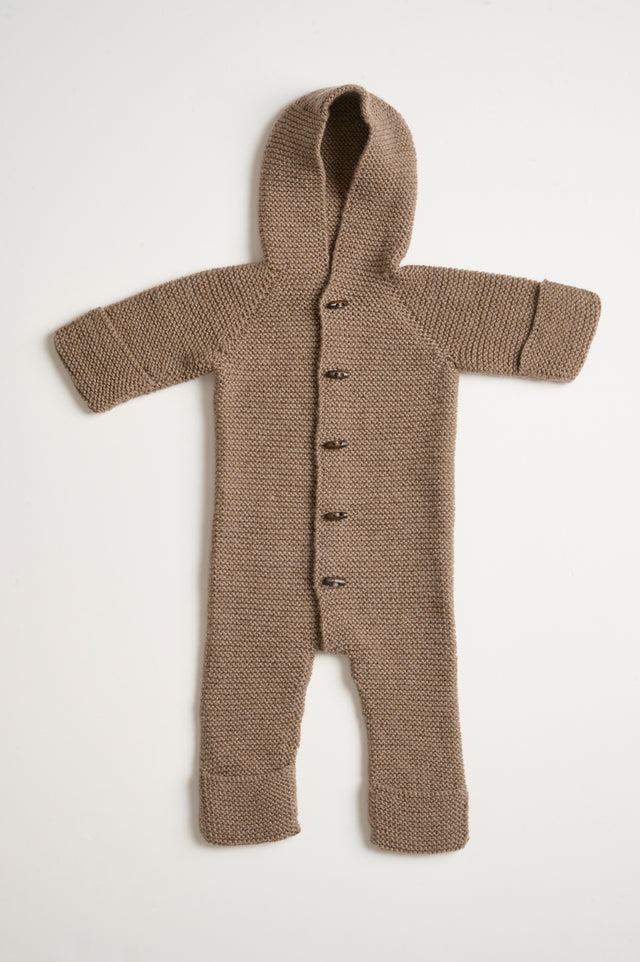 Selmas sovedragt fra PetiteKnit er en skøn dragt til babyer og små børn. Dragten strikkes topdown i retstrik og med raglanudtagninger i bærestykket.