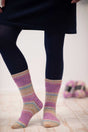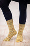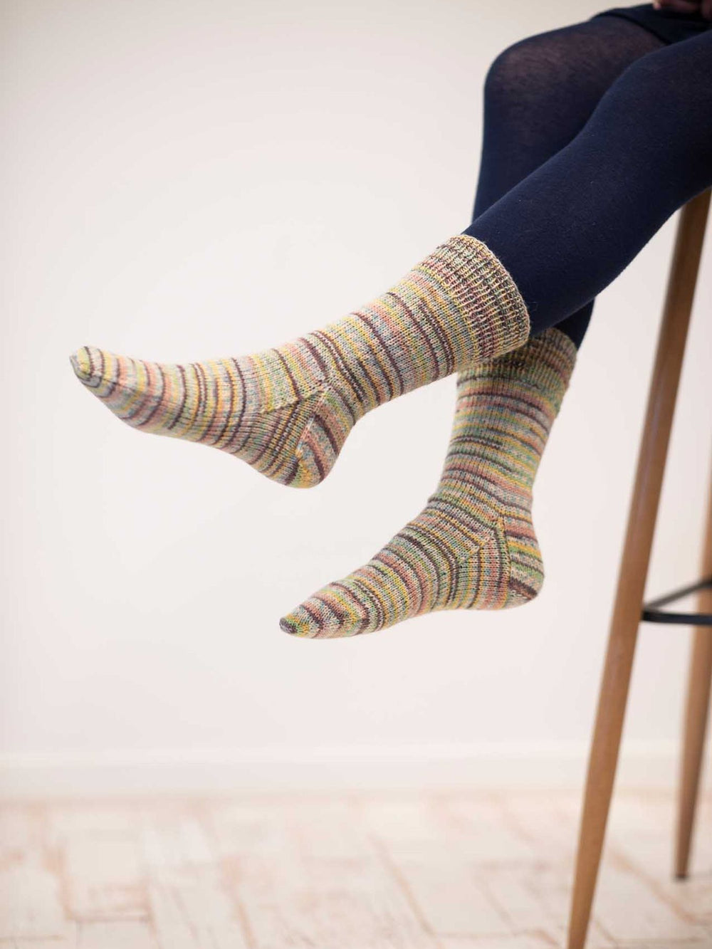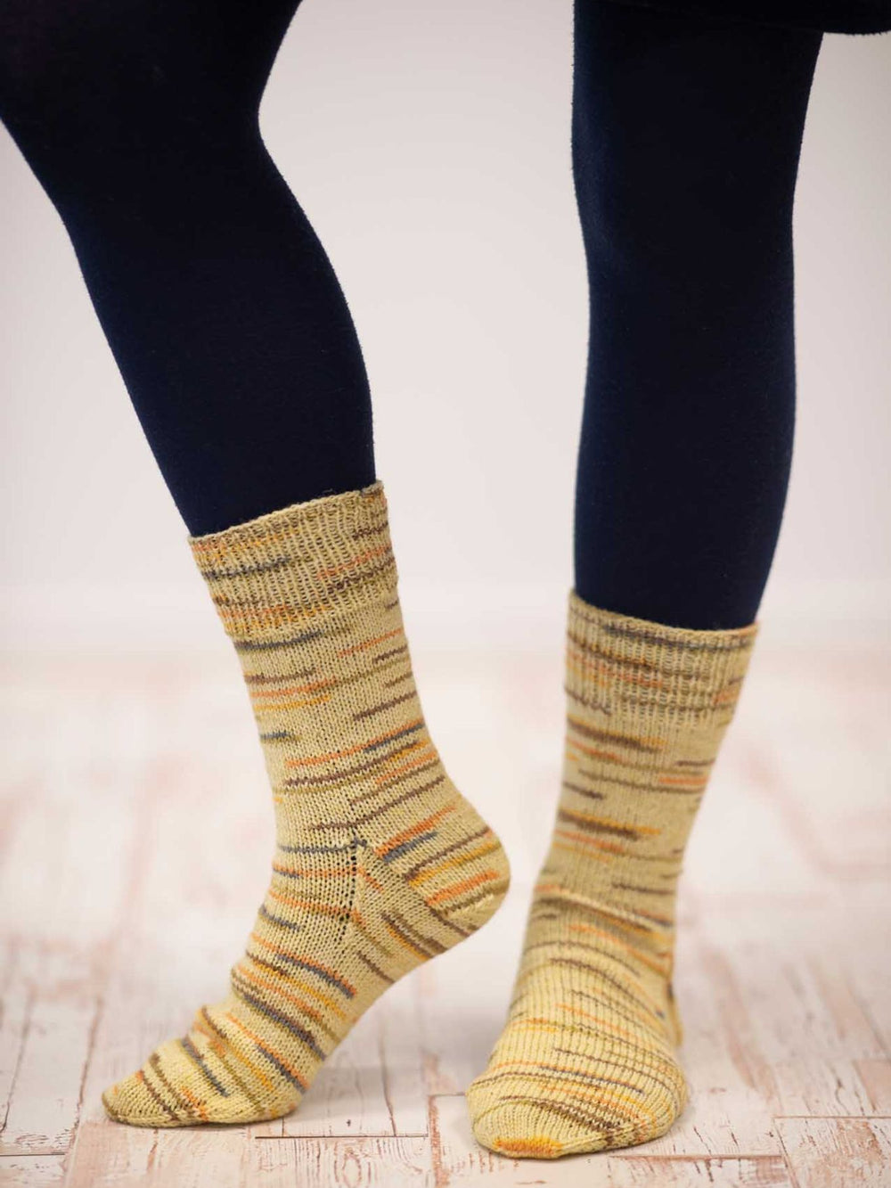 Disse mønstrede hyggestrømper er med andre ord helt enormt bløde, varme og behagelige, og du vil slet ikke kunne vente med at tage dem i brug. Det er derfor også en fornøjelse at strikke med Honeybee Print – både fordi det er så blødt, men også fordi farveskiftet gør det sjovt at strikke med.