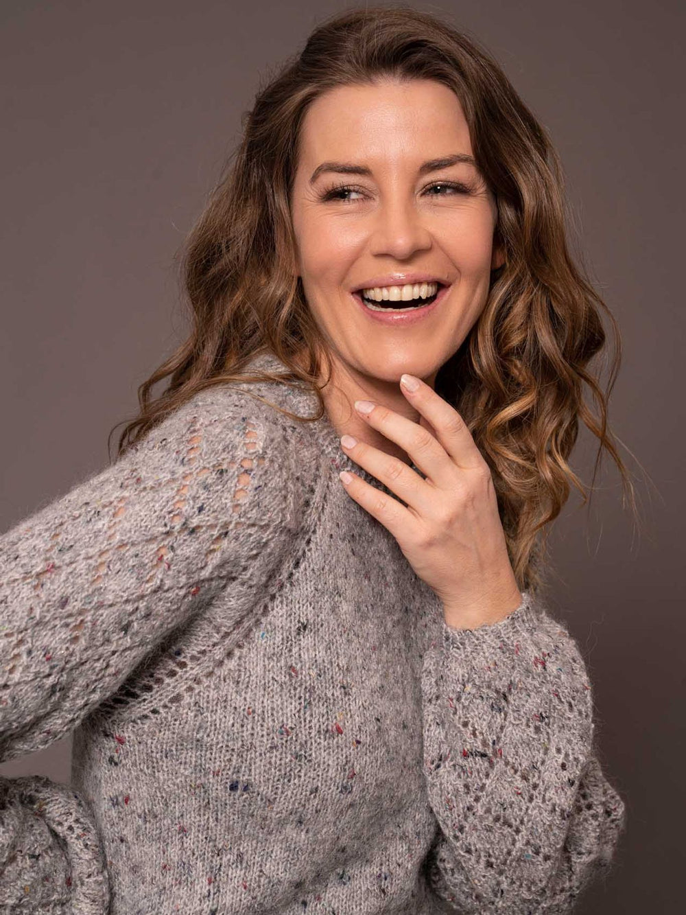 Tweedgarnet Mayflower Casablanca Lux bidrager også til den ekstra komfortable pasform, da garnet er en luksuriøs kombination af bl.a. alpaka og uld. Casablanca Lux har et unikt udseende, hvor det fluffy skær fra alpakaulden kombineres med tweednister og en diskret glimmertråd. Garnet passer derfor perfekt til en enkel trøje som Skagen trøjen, hvor det ikke kun er garnets lethed og blødhed, der kommer til at spille en rolle, men også garnets udseende.