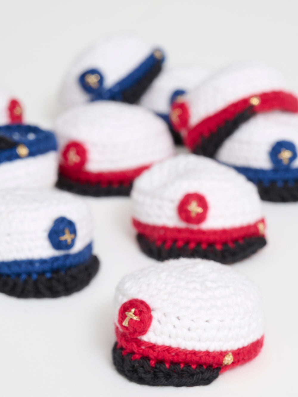 Hækl fine, små studenterhuer, som kan pynte på bordet til årets studentergilde.