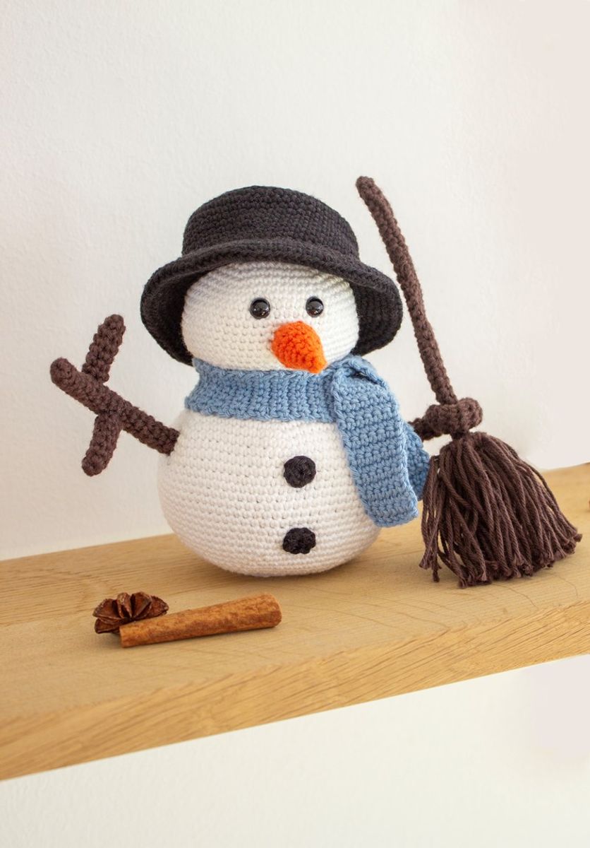 Den hæklede snemand er lavet i den fine Mayflower Cotton 8/4. Dette er en kvalitet i et bredt farvespektrum i 100 % bomuld. Det perfekte garn til små fine julefigurer.